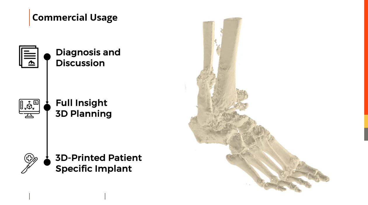 ในเชิงธุรกิจ ต่อจากความสำเร็จในการรักษาผู้ป่วยข้อเท้าเสื่อม บริษัทยังเตรียมขยายผลการใช้เทคโนโลยีไปสู่กลุ่มผู้ป่วยกลุ่มอื่นที่สามารถได้รับประโยชน์จากเทคโนโลยีนี้ได้ เช่น กลุ่มผู้ป่วยปากแหว่งเพดานโหว่ที่พบเฉลี่ยราว 0.1% ของประชากรไทยทั้งหมด หรือประมาณ 60,000 คน ผู้ป่วยกลุ่มนี้ต้องเข้ารับการผ่าตัดหลายครั้งตามลำดับขั้น ตั้งแต่วัยเด็กจนถึงอายุ 18–20 ปี โดยหนึ่งในขั้นตอนสุดท้ายคือการผ่าตัดแก้ไขการสบฟัน ซึ่งสามารถได้รับประโยชน์จากเทคโนโลยีวัสดุทดแทนกระดูกเข้ามาช่วยเสริมผลลัพธ์การรักษา เพื่อเพิ่มศักยภาพทางเทคโนโลยีที่สูงเพื่อรองรับความต้องการที่เพิ่มขึ้นในอนาคต ปัจจุบันทางทีมวิจัยมุ่งเน้นการพัฒนาปัญญาประดิษฐ์ (AI) ที่เกี่ยวข้องกับการออกแบบและวิเคราะห์ใบหน้า เพื่อยกระดับการพัฒนาอุปกรณ์ทางการแพทย์ให้ตอบโจทย์ได้ครอบคลุมยิ่งขึ้น