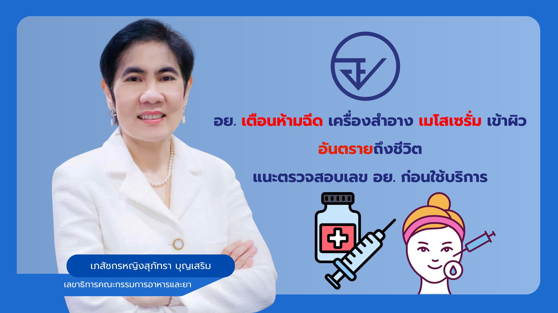 อย. เตือนห้ามฉีดเครื่องสำอางเมโสเซรั่มเข้าผิว อันตรายถึงชีวิต แนะตรวจสอบเลข อย. ก่อนใช้บริการ