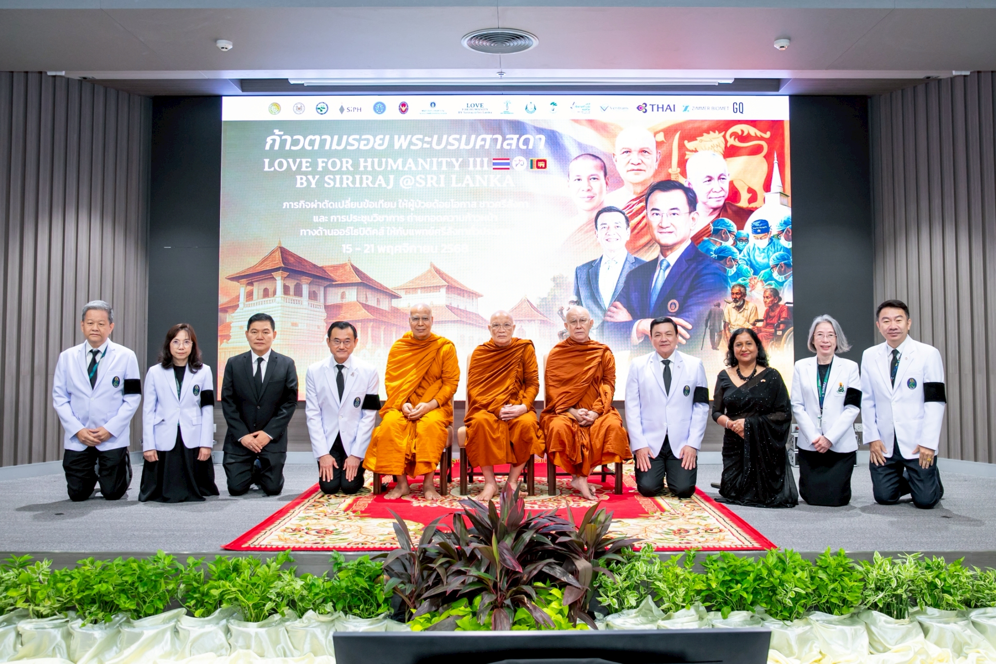 ได้รับเกียรติจาก ศ. นพ.อภิชาติ อัศวมงคลกุล คณบดีคณะแพทยศาสตร์ศิริราชพยาบาล ม.มหิดล เป็นประธานเปิดงานแถลงข่าว พร้อมกันนี้ยังมี พระราชภาวนาวชิรากร เจ้าอาวาสวัดป่านาคำน้อย พระราชวชิรธรรมาจารย์เจ้าอาวาสวัดป่าบ้านตาด พระพรหมศากยวงศ์วิสุทธิ์ ผู้ช่วยเจ้าอาวาสวัดบวรนิเวศราชวรวิหาร เจ้าคณะภาค 6-7 ธรรมยุต คุณไพฑูรย์ มหาพัณณาภรณ์ เอกอัครราชทูตไทยประจำประเทศศรีลังกา Mrs. E.A.S Wijayanthi Edirisinghe เอกอัครราชทูตสาธารณรัฐสังคมนิยมประชาธิปไตยศรีลังกาประจำประเทศไทยและ ศ. นพ.กีรติ เจริญชลวานิช หัวหน้าภาควิชาศัลยศาสตร์ออร์โธปิดิคส์และกายภาพบำบัด ร่วมด้วย ณ ห้องประชุมสิรินธร อาคารเฉลิมพระเกียรติ ชั้น G โรงพยาบาลศิริราช