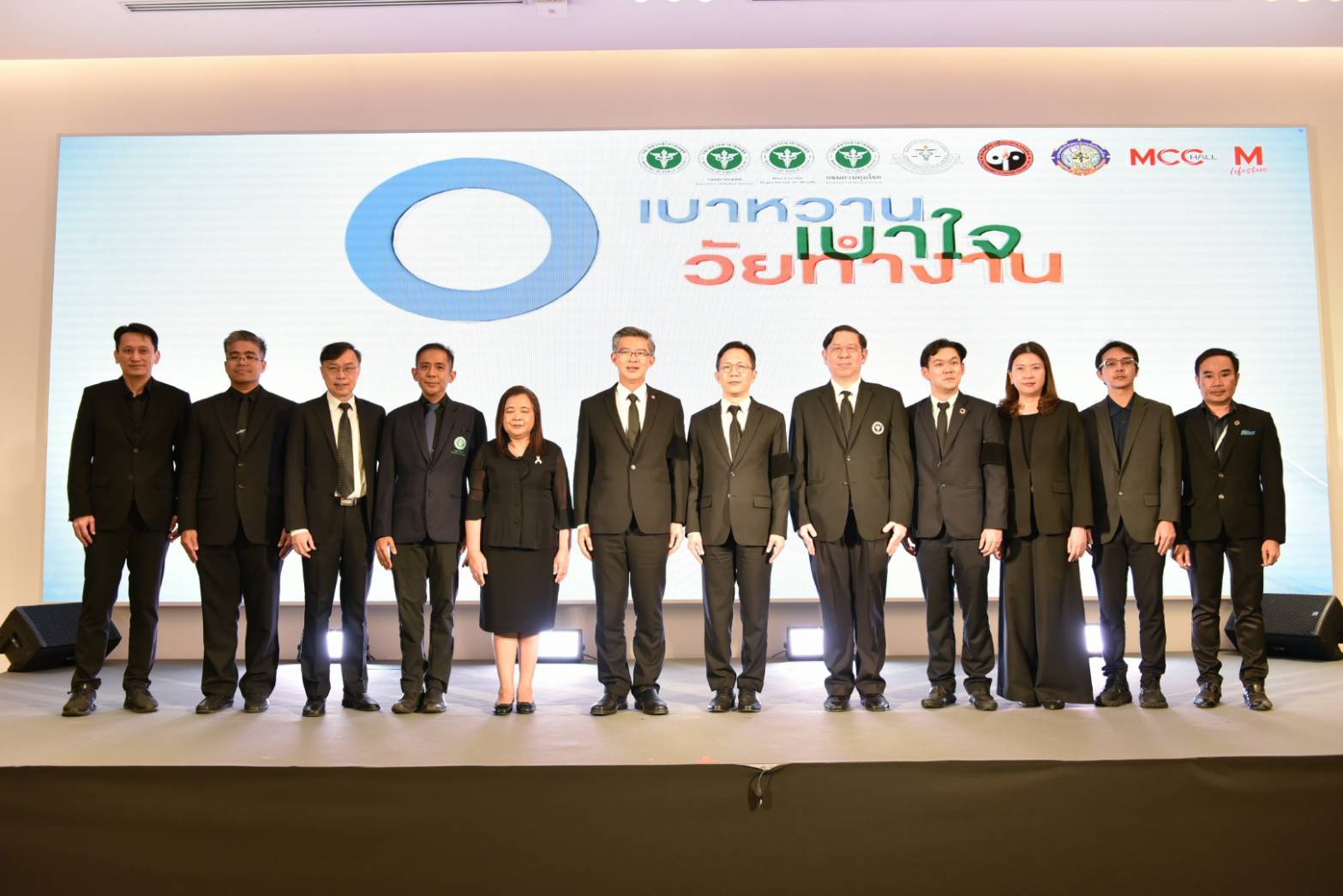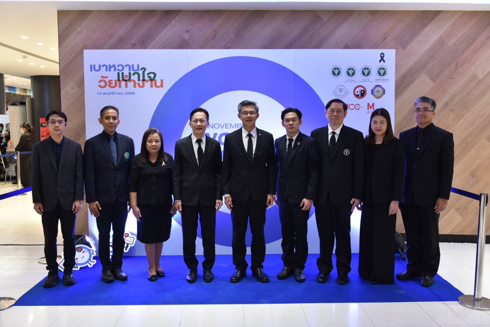 นายแพทย์ทวีศิลป์ วิษณุโยธิน คณะที่ปรึกษารัฐมนตรีว่าการกระทรวงสาธารณสุข และที่ปรึกษากรมการแพทย์ กล่าวว่า กระทรวงสาธารณสุขให้ความสำคัญกับโรคไม่ติดต่อเรื้อรัง โดยมุ่งการสร้างความรอบรู้ด้านสุขภาพ ส่งเสริมวิจัยและพัฒนานวัตกรรมทางการแพทย์ สร้างมูลค่าเพิ่มทางเศรษฐกิจ รวมทั้งส่งเสริมการใช้ Digital Health เพื่อให้ประชาชนมีคุณภาพชีวิตที่ดี ซึ่ง “เบาหวาน" เป็นโรคที่สามารถเกิดขึ้นได้ในทุกช่วงวัย ทั่วโลกมีผู้คนกว่า 589 ล้านคน ที่กำลังเผชิญกับโรคเบาหวาน และคาดการณ์ว่าในปี 2050 จำนวนผู้ใหญ่ที่ป่วยโรคเบาหวานจะเพิ่มขึ้นเป็น 852.5 ล้านคน สำหรับในประเทศไทย พบว่า ในระยะเวลา 5 ปี ผู้ป่วยโรคเบาหวานมีแนวโน้มเพิ่มขึ้นอย่างต่อเนื่อง หรือเพิ่มขึ้นเกือบครึ่งล้านคน สะท้อนให้เห็นว่าโรคเบาหวานยังคงเป็นปัญหาสาธารณสุขสำคัญของประเทศ โดยเฉพาะวัยทำงานที่มีความเสี่ยงต่อการเกิดโรคเบาหวาน โดยพบว่าวัยทำงานเป็นวัยที่เข้าถึงการวินิจฉัยและการรักษาโรคเบาหวานน้อยกว่า และมีการควบคุมโรคแย่กว่าวัยสูงอายุ เป็นสิ่งที่น่ากังวลว่าจะอาจมีผลทำให้เกิดโรคแทรกซ้อนเร็วขึ้นและอาจรุนแรงกว่าปกติ อีกทั้งยังส่งผลกระทบต่อการทำงานและเศรษฐกิจ เช่น การลาหยุดงานเนื่องจากอาการป่วย หรือประสิทธิภาพการทำงานลดลงขณะทำงาน รวมถึงภาวะแทรกซ้อนจากเบาหวานเป็นสาเหตุหลักของการทุพพลภาพ คุณภาพชีวิตลดลง และการสูญเสียประสิทธิภาพจากการทำงาน ถือเป็นภาระทางเศรษฐกิจที่สำคัญ กระทรวงสาธารณสุข โดยกรมการแพทย์จึงได้บูรณาการการทำงานกับหลายภาคส่วน ไม่ว่าจะเป็นกรมอนามัย กรมควบคุมโรค สมาคมโรคเบาหวานแห่งประเทศไทยฯ สมาคมผู้ให้ความรู้โรคเบาหวาน สมาคมนักกำหนดอาหารแห่งประเทศไทย และเดอะมอล์ไลฟ์สโตร์ บางกะปิ ร่วมกันจัดงานวันเบาหวานโลก ปี 2568 ซึ่งตรงกับ 14 พฤศจิกายน “World Diabetes Day 2025 : Empower for Change” ภายใต้ธีม “เบาหวาน เบาใจ วัยทำงาน”