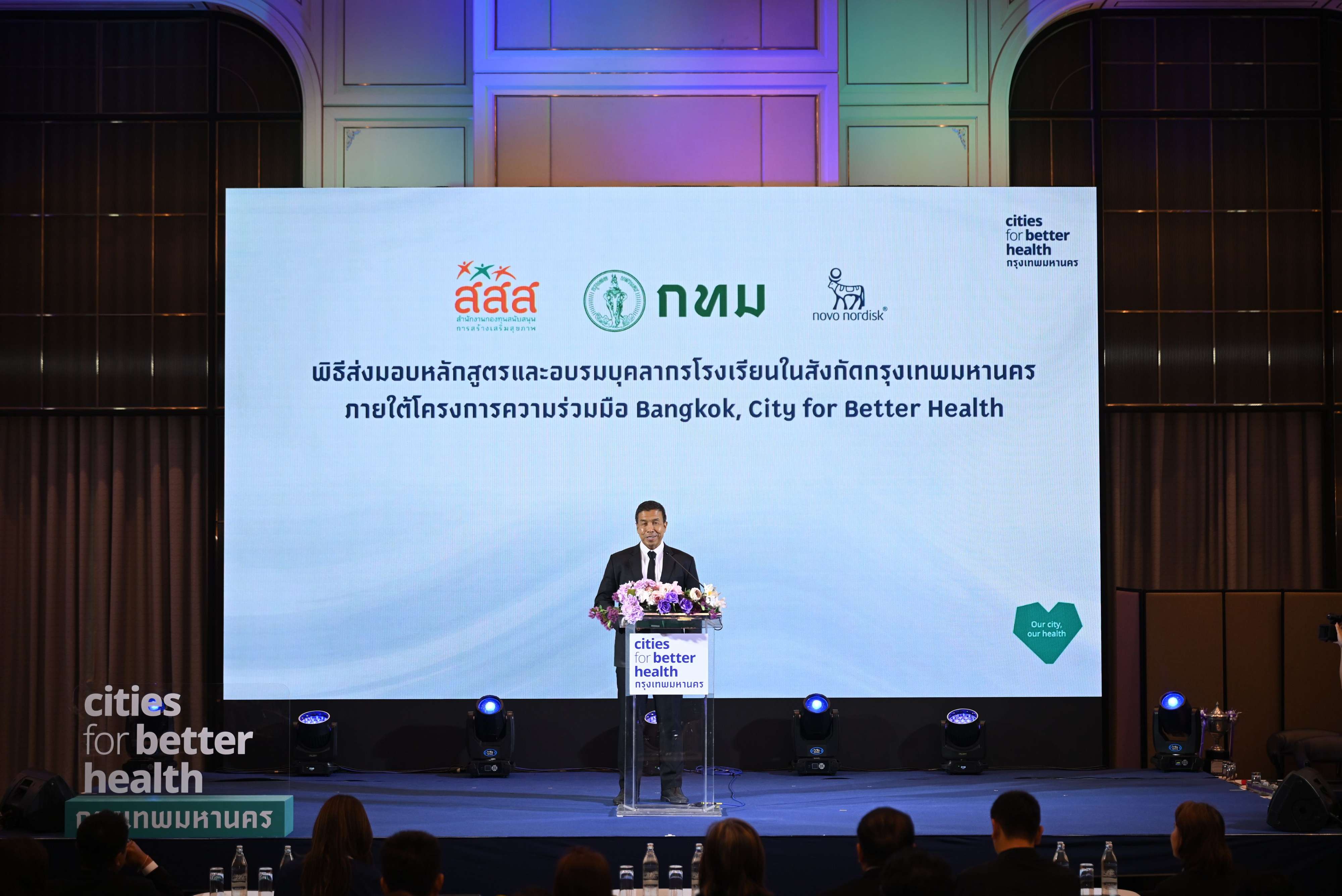 กรุงเทพมหานครและบริษัท โนโว นอร์ดิสค์ ฟาร์มา (ประเทศไทย) จำกัด (“โนโว นอร์ดิสค์”) ส่งมอบ “หลักสูตรอย่าปล่อยให้เด็กอ้วน” ให้แก่ผู้อำนวยการเขต 50 เขตทั่วกรุงเทพฯ พร้อมจัดประชุมเชิงปฏิบัติการให้ครูจากโรงเรียนต้นแบบหลักสูตร 21 โรง โครงการนี้เป็นส่วนหนึ่งของความร่วมมือ “Bangkok, City for Better Health” เพื่อป้องกันโรคอ้วนในเด็กและส่งเสริมการมีวิถีชีวิตที่ดีต่อสุขภาพในเมือง