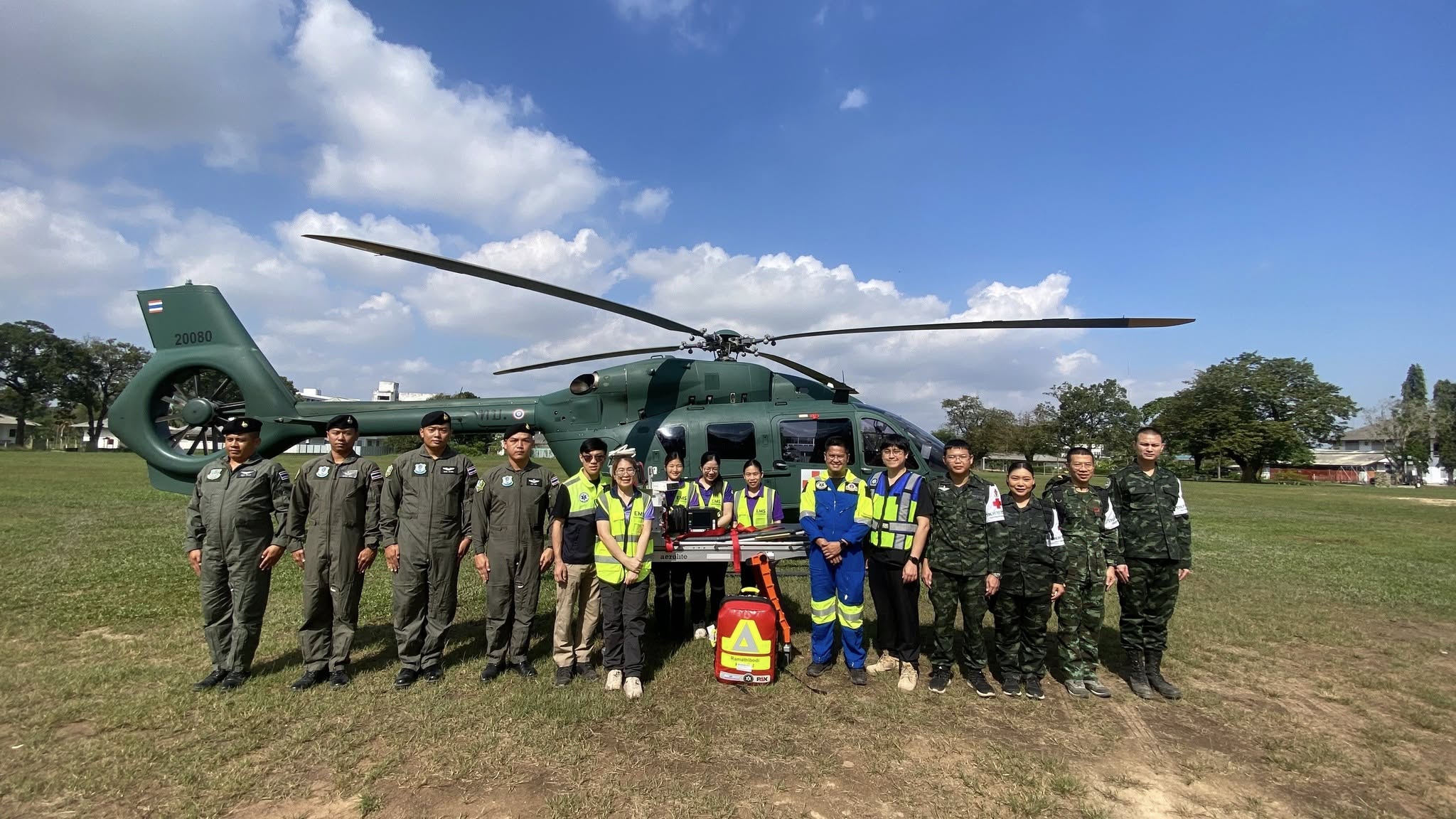 โดยทีมแพทย์ทางอากาศ หรือ Sky Doctor มีภารกิจสำคัญในการวินิจฉัย และเคลื่อนย้ายผู้ป่วยวิกฤตผ่านทางอากาศด้วยเฮลิคอปเตอร์ เพื่อส่งต่อผู้ป่วยไปยังสถานพยาบาลปลายทางได้อย่างรวดเร็วและมีประสิทธิภาพ ท่ามกลางอุปสรรคในการคมนาคม พร้อมทั้งมีการสนับสนุนทีมแพทย์ เพื่อให้บริการตรวจประเมินสุขภาพเบื้องต้น และให้คำแนะนำในการรักษาดูแลสุขภาพ รวมถึงแจกจ่ายยาป้องกันโรคฉี่หนู (Leptospirosis) เพื่อป้องกันการระบาดและลดความเสี่ยงของการติดเชื้อที่อาจมาพร้อมกับสภาวะน้ำท่วมขัง
