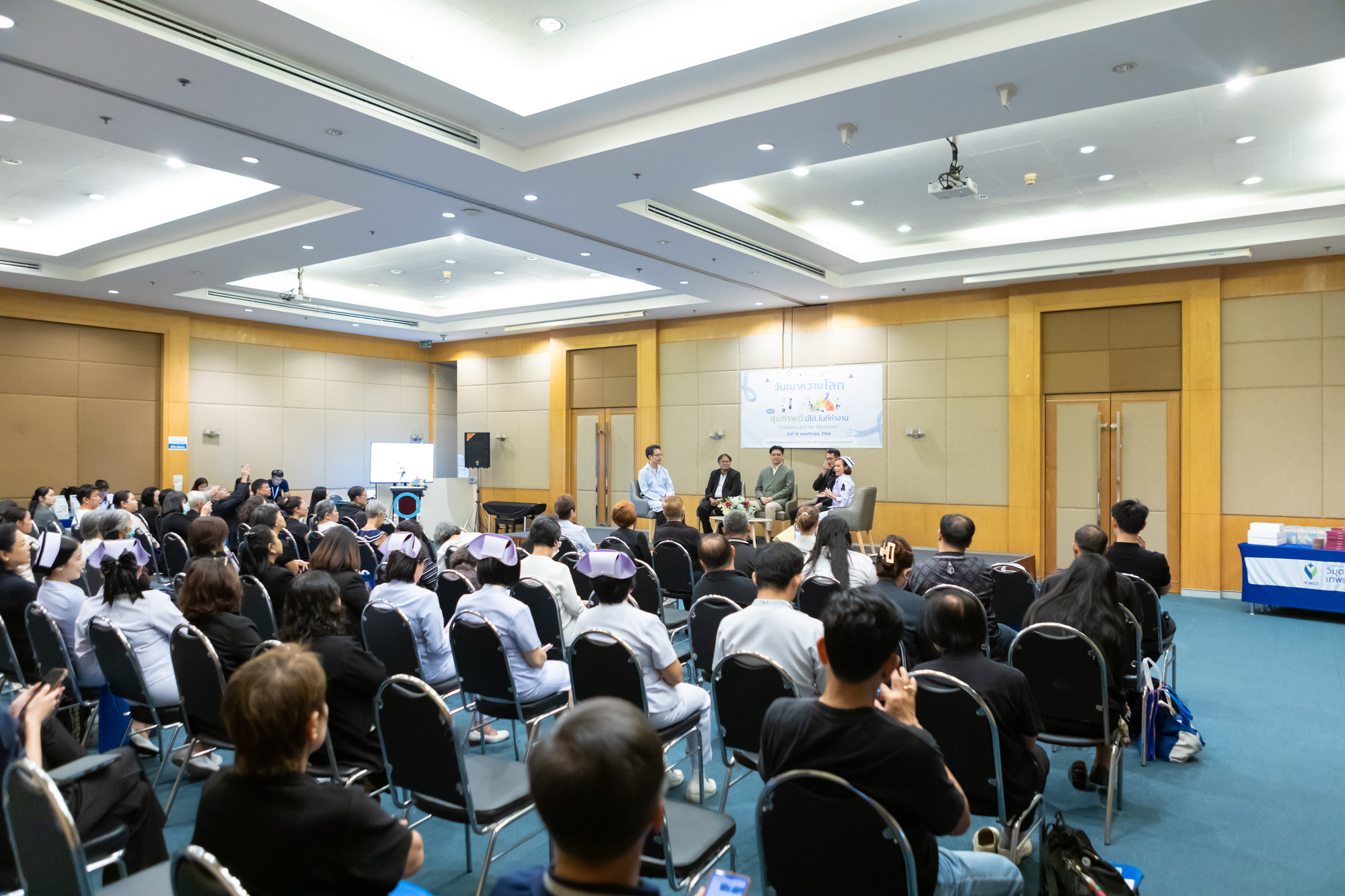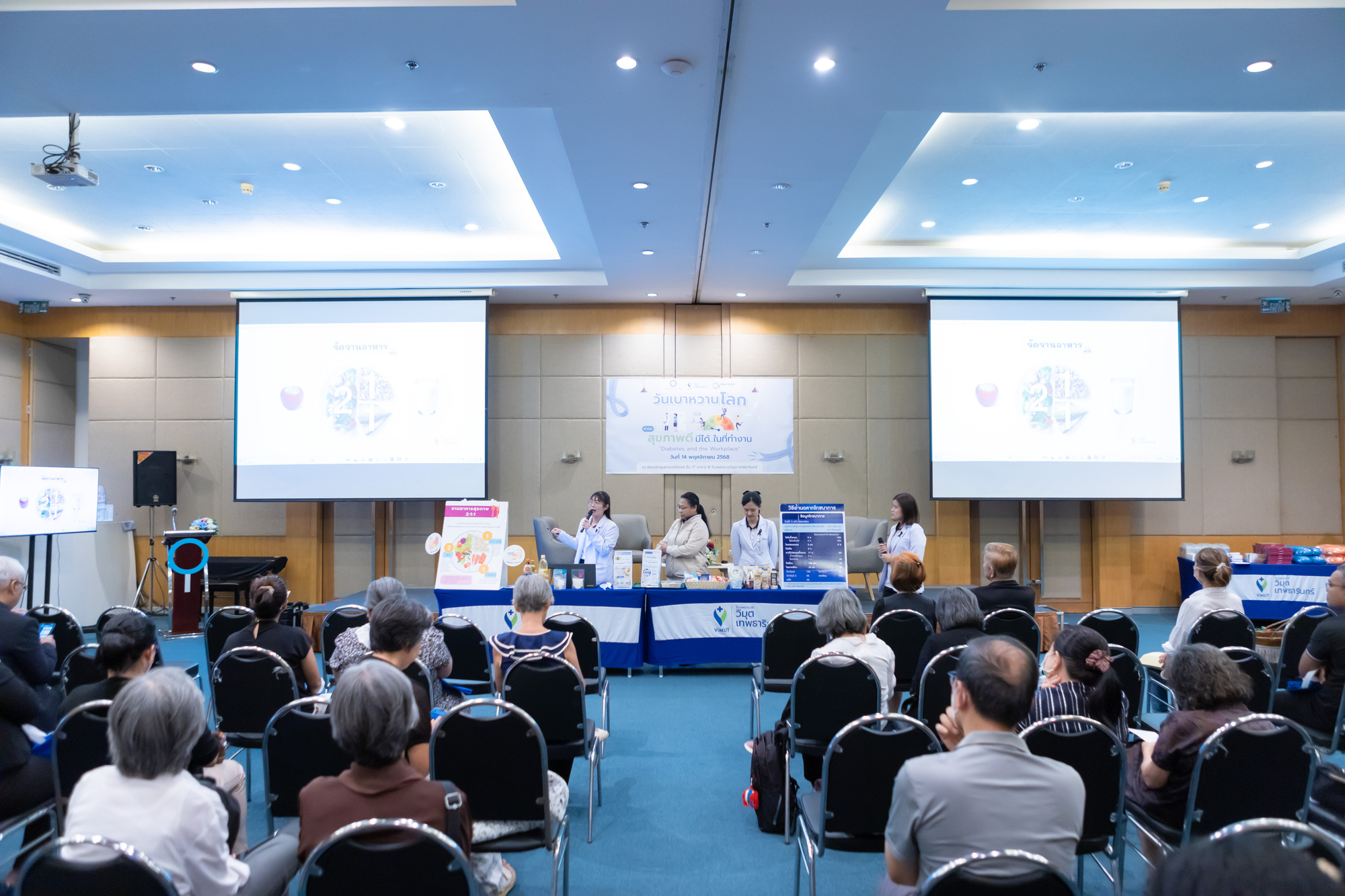 หนึ่งในกิจกรรมที่น่าสนใจ คือ ช่วงเสวนา "สุขภาพดี มีได้...ในที่ทำงาน" นำโดย แพทย์ผู้เชี่ยวชาญ นพ.เอกลักษณ์ วโนทยาโรจน์ อายุรแพทย์ต่อมไร้ท่อ และผู้อำนวยการศูนย์เบาหวาน ไทรอยด์ และต่อมไร้ท่อเทพธารินทร์ ที่มาอัปเดตสถานการณ์โรคเบาหวานปัจจุบันที่น่าเป็นห่วงอย่างยิ่ง เพราะเป็นโรคในกลุ่ม NCDs ที่เพิ่มขึ้นเร็ว ในทุก ๆ 5 ปี จะมีผู้ป่วยเพิ่ม 1 ล้านคน หรือ ในทุก 9 คน จะเป็นเบาหวาน 1 คน นอกจากนี้ โรคเบาหวานยังเริ่มคุกคามคนวัยทำงานมากขึ้น อายุเฉลี่ยผู้ที่ป่วยลดลงจาก 50 ปี เป็น 40 ปี และเริ่มพบในวัย 30 ปีมากขึ้น โดยกลุ่มวัยทำงานมักมีภาวะแทรกซ้อนสูงกว่ากลุ่มอื่น ดังนั้น “คนวัยทำงานจำเป็นต้องใส่ใจสุขภาพอย่างจริงจังและต่อเนื่อง”