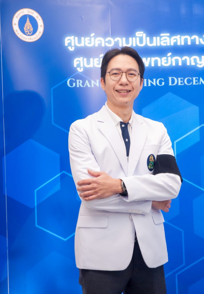 “ปัจจุบัน เราพบว่าปัญหาสุขภาพของผู้ป่วยหนึ่งคนมีค่อนข้างหลากหลาย บางคนอาจมีหลายโรคที่ต้องรักษา หรือบางคนมีเพียงหนึ่งโรค แต่ต้องได้รับการดูแลรักษาจากผู้เชี่ยวชาญหลายทีม ยกตัวอย่าง ศูนย์ความเป็นเลิศผ่าตัดข้อเทียม เราดูแลผู้ป่วยโรคข้อเข่าและข้อสะโพกเสื่อมแบบครบวงจรตั้งแต่ก่อนผ่าตัด ระหว่างผ่าตัด ไปจนถึงฟื้นฟูหลังผ่าตัด โดยใช้เทคโนโลยีหุ่นยนต์ช่วยผ่าตัด (Robotic-assisted Surgery) ที่เพิ่มความแม่นยำ ลดการบาดเจ็บของเนื้อเยื่อ ทำให้ผู้ป่วยเจ็บน้อยลง ฟื้นตัวเร็วขึ้น และปลอดภัยทุกขั้นตอน โดยมีทีมสหสาขาร่วมกันวางแผน ทั้งศัลยแพทย์เฉพาะทาง วิสัญญีแพทย์ พยาบาล และนักกายภาพบำบัด อีกศูนย์หนึ่งคือศูนย์รังสีร่วมรักษาระบบลำตัว ซึ่งใช้เทคโนโลยีขั้นสูง เช่น DSA, CT Scan, Ablation และ Embolization ในการรักษาโรคเฉพาะทางโดยเทคโนโลยีเหล่านี้ช่วยให้การรักษามีความแม่นยำสูง ลดภาวะแทรกซ้อน และเป็นไปตามมาตรฐานสากล ทั้งหมดนี้สะท้อนเป้าหมายของ GJCOE ในการยกระดับมาตรฐานการแพทย์ของไทย” นพ. ตะวัน กล่าว