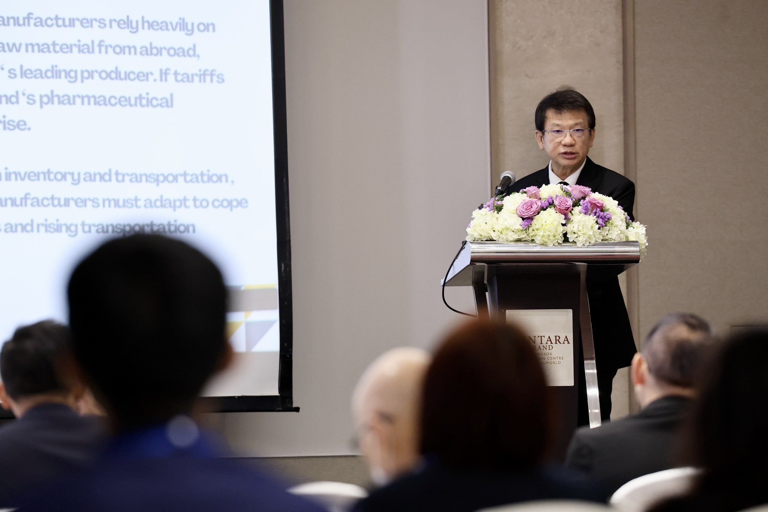 ภก.สุรชัย เรืองสุขศิลป์ ประธานกลุ่มอุตสาหกรรมยา สภาอุตสาหกรรมแห่งประเทศไทย กล่าวว่า ความตึงเครียดทางภูมิรัฐศาสตร์และสงครามการค้ากำลังทำให้ห่วงโซ่อุปทานยาทั่วโลกผันผวน โดยเฉพาะความพยายามของสหรัฐในการลดการพึ่งพาจีน ซึ่งเป็นแหล่งผลิตสารออกฤทธิ์ทางเภสัชกรรมรายใหญ่ของโลก