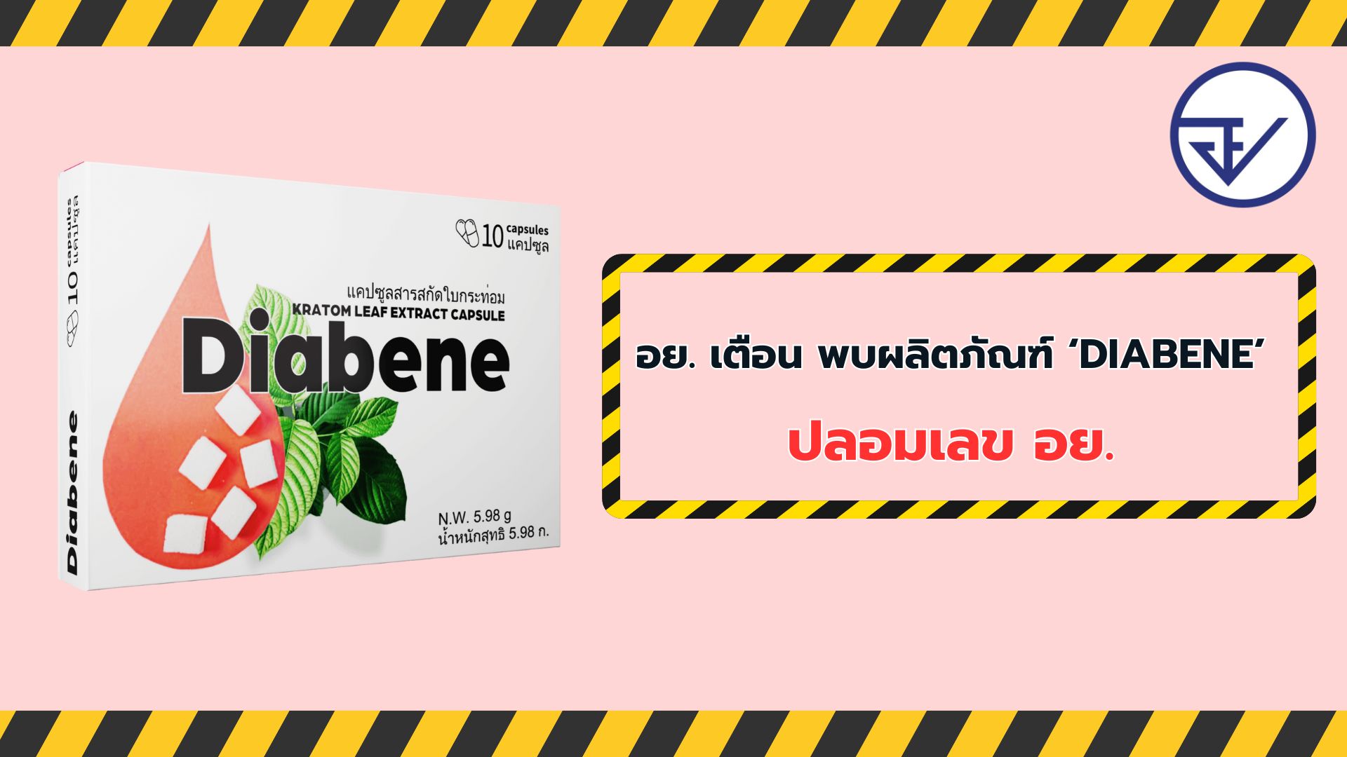 สำนักงานคณะกรรมการอาหารและยา (อย.) ได้ตรวจพบผลิตภัณฑ์ชื่อ ไดอะบีน Diabene แคปซูลสารสกัดใบกระท่อม (KRATOM LEAF EXTRACT CAPSULE) วางจำหน่ายผ่านช่องทางออนไลน์ เว็บไซต์ https://www.xitu.vn/diabene-th/ โดยแสดงเลขสารบบอาหาร 11-1-13958-5-0622 และโฆษณาอวดอ้างสรรพคุณในการรักษาโรคเบาหวาน