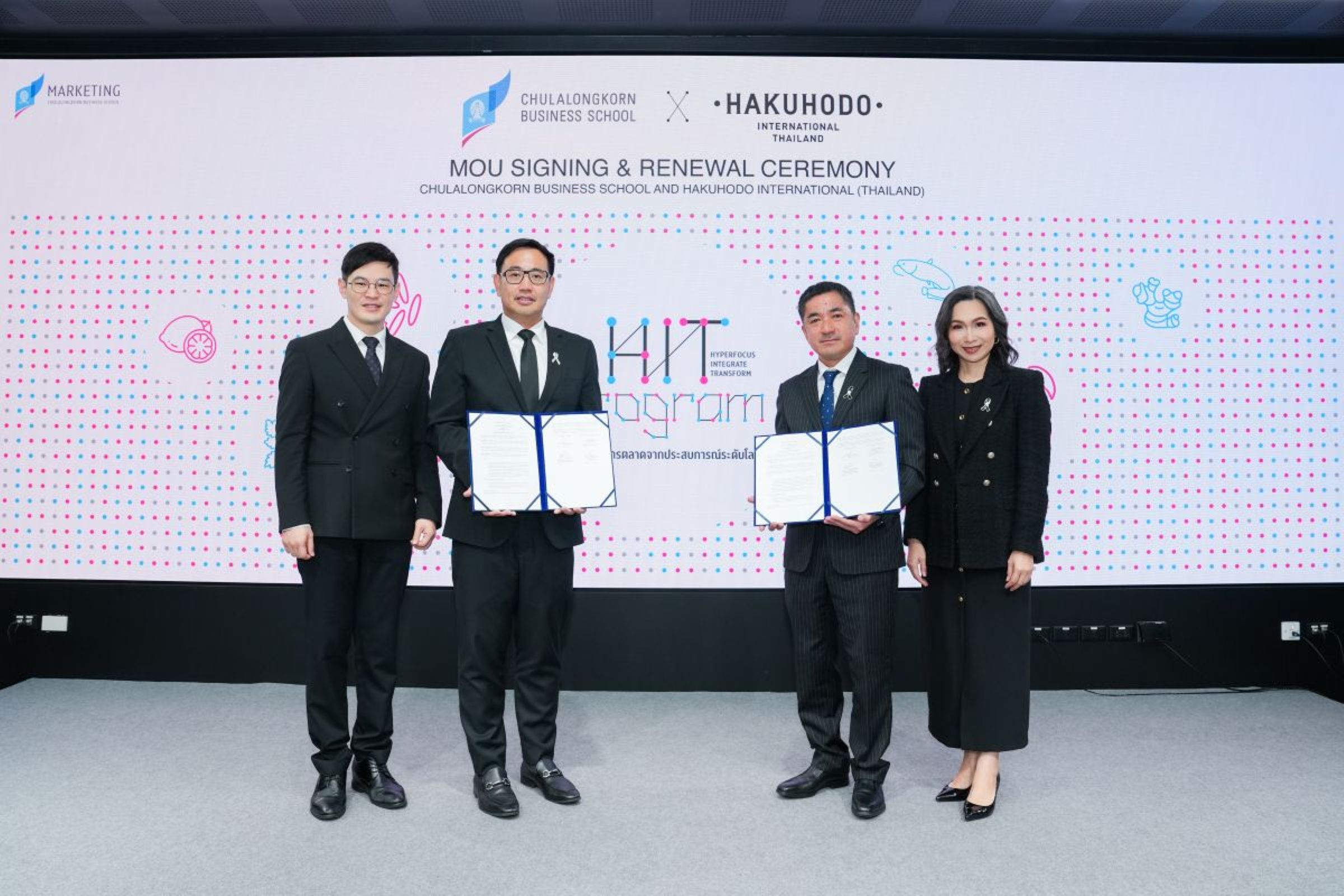 คณะพาณิชยศาสตร์และการบัญชี จุฬาลงกรณ์ มหาวิทยาลัย (CBS) ร่วมกับ บริษัท ฮาคูโฮโด อินเตอร์เนชั่นแนล (ไทยแลนด์) จำกัด (HIT) ประกาศความร่วมมือเชิงกลยุทธ์ต่อเนื่องเป็นปีที่ 3 เดินหน้าโครงการ “HIT PROGRAM ปี 3” เพื่อเสริมสร้างศักยภาพนิสิตไทยก้าวสู่การเป็นนักการตลาดระดับสากล ที่ยังคำนึงถึงผลประโยชน์สู่ชุมชน