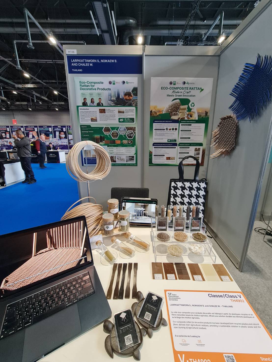 1. ผลิตภัณฑ์ตกแต่งจากหวายเทียมคอมโพสิตที่เป็นมิตรต่อสิ่งแวดล้อม (Eco-Composite Rattan for Decorative Products) ผลงานโดย ดร.ศิริพร ลาภเกียรติถาวร ผู้เชี่ยวชาญพิเศษ และดร.บุศรินทร์ น้อยแก้ว นักวิจัย ศูนย์ความเชี่ยวชาญนวัตกรรมวัสดุ