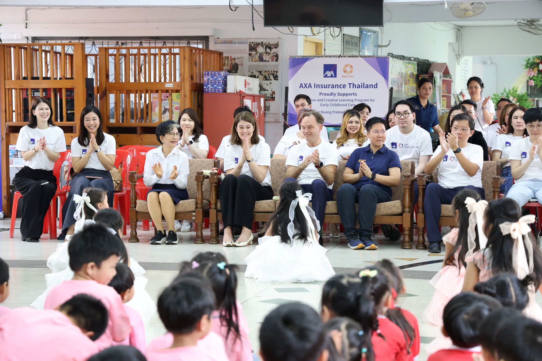 ในโอกาสนี้ แอกซ่าประกันภัยได้รับเกียรติจาก อูลริเกอร์ เดอควน Group Chief of Communication, Brand & Sustainability ร่วมกิจกรรมกับ กิลโยม มิราโบว์ ประธานเจ้าหน้าที่บริหาร บริษัท แอกซ่าประกันภัย จำกัด (มหาชน) พร้อมด้วยคณะผู้บริหารและพนักงานอาสาสมัคร ลงพื้นที่ร่วมทำกิจกรรมกับเด็กๆอย่างใกล้ชิด พร้อมมอบอาหารที่มีคุณค่าทางโภชนาการและอุปกรณ์การเรียนที่จำเป็น เพื่อส่งเสริมกระบวนการเรียนรู้และสุขภาวะที่ดีในชีวิตประจำวัน นอกจากนี้ ทีมงานยังได้จัดกิจกรรมส่งเสริมการเรียนรู้เชิงสร้างสรรค์ เพื่อเปิดพื้นที่ให้เด็ก ๆ ได้แสดงออก เสริมสร้างความมั่นใจ และสร้างบรรยากาศที่เปี่ยมไปด้วยรอยยิ้มและความสนุกสนาน
