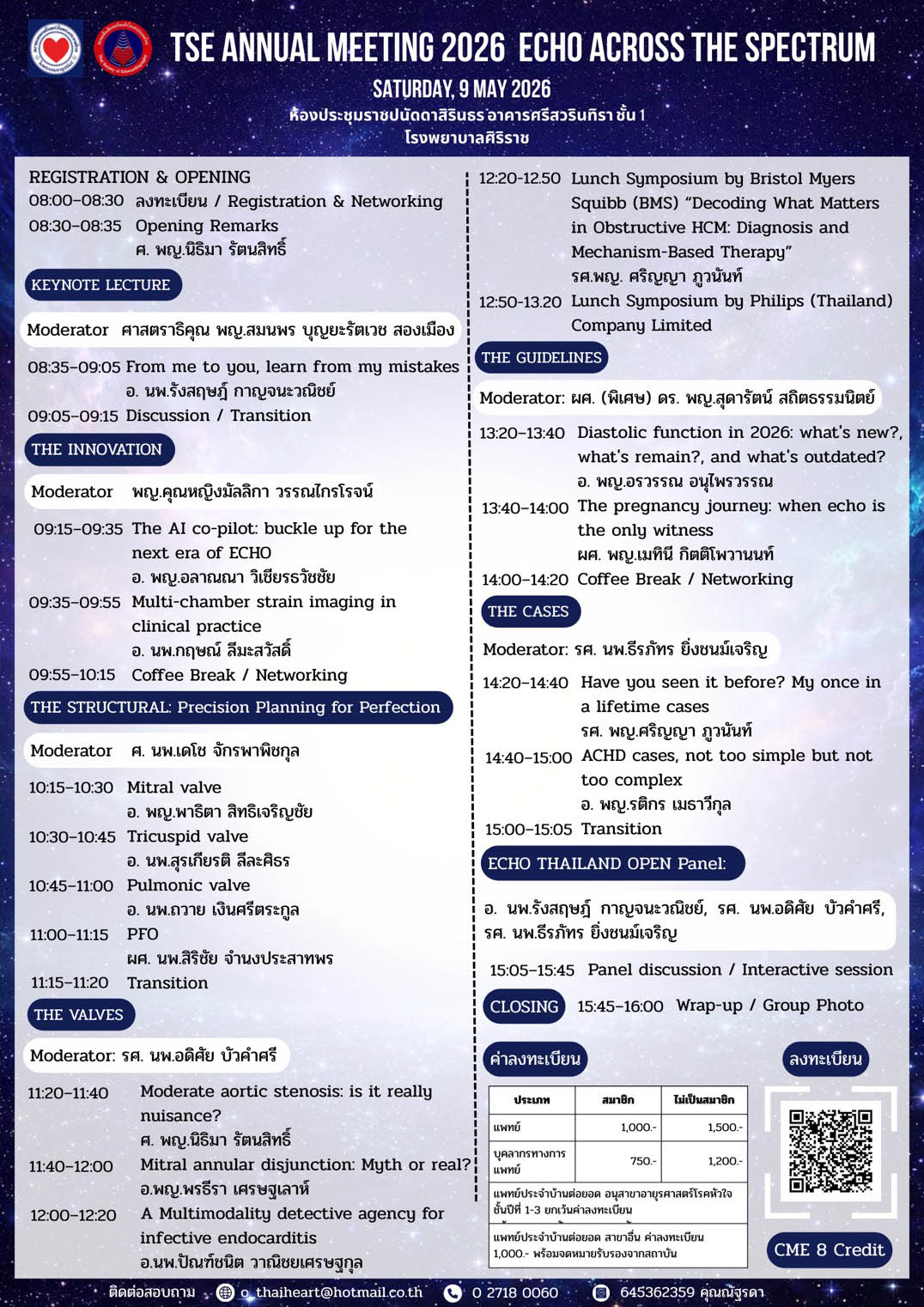 ชมรมคลื่นเสียงสะท้อนหัวใจแห่งประเทศไทย จัดการประชุมวิชาการ Annual Scientific Meeting 2026 “ECHO Across the Spectrum” ในวันเสาร์ที่ 9 พฤษภาคม 2569 ณ ห้องประชุมราชปนัดดาสิรินธร อาคารศรีสวรินทิรา ชั้น 1 คณะแพทยศาสตร์ ศิริราชพยาบาล
