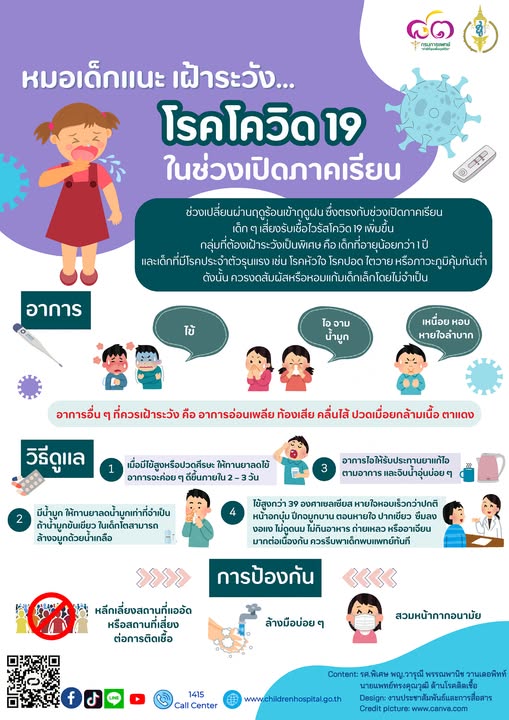 อย่างไรก็ตามโรคโควิด 19 ยังคงแพร่ระบาดอย่างต่อเนื่อง แนะนำผู้ปกครองหมั่นดูแลสุขอนามัย รักษาความสะอาดอย่างสม่ำเสมอ และฉีดวัคซีนให้ครบตามช่วงวัย