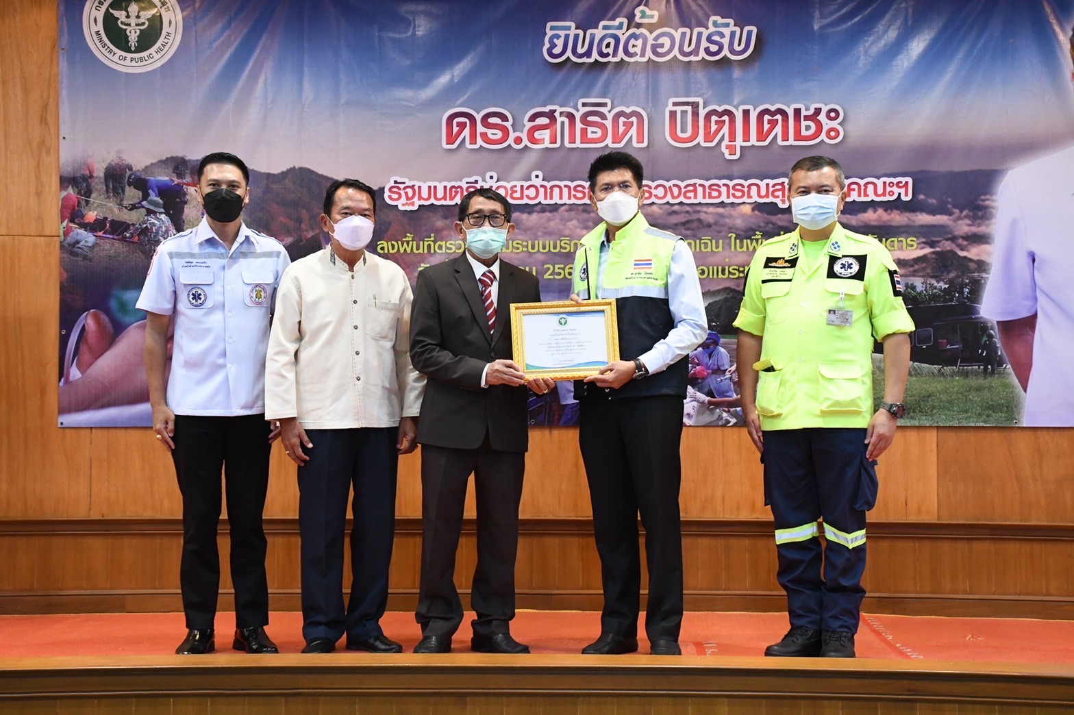 ดร.สาธิต ปิตุเตชะ รัฐมนตรีช่วยว่าการกระทรวงสาธารณสุข พร้อมด้วย เรืออากาศเอก นพ.อัจฉริยะ แพงมา เลขาธิการสถาบันการแพทย์ฉุกเฉินแห่งชาติ และคณะ ลงพื้นที่ติดตามการดำเนินงานการแพทย์ฉุกเฉินและเครือข่ายบริการการแพทย์ฉุกเฉินในพื้นที่จังหวัดตาก พร้อมมอบชุดปฏิบัติงาน HERO Sky doctor (HERO AWARD) จำนวน 4 คน และมอบเกียรติบัตรให้กับหน่วยปฏิบัติการการแพทย์ฉุกเฉิน และหน่วยงานสนับสนุนงานการแพทย์ฉุกเฉินจังหวัดตาก จำนวน 13 รางวัล