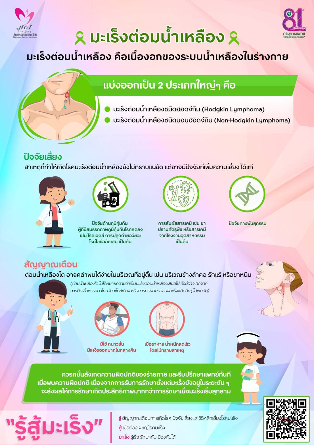 กรมการแพทย์ชี้ “มะเร็งต่อมน้ำเหลือง” พบได้บ่อยในคนไทย แนะหมั่นสังเกตตนเองหากคลำพบต่อมน้ำเหลืองโตหรือมีอาการผิดปกติ ควรรีบไปพบแพทย์