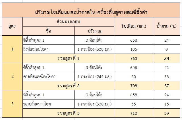 ซีอิ๊วดำ 3ช้อนโต๊ะมีโซเดียม ประมาณ 650 มิลลิกรัมเท่ากับปริมาณโซเดียมที่ควรได้รับตามคำแนะนำต่อ