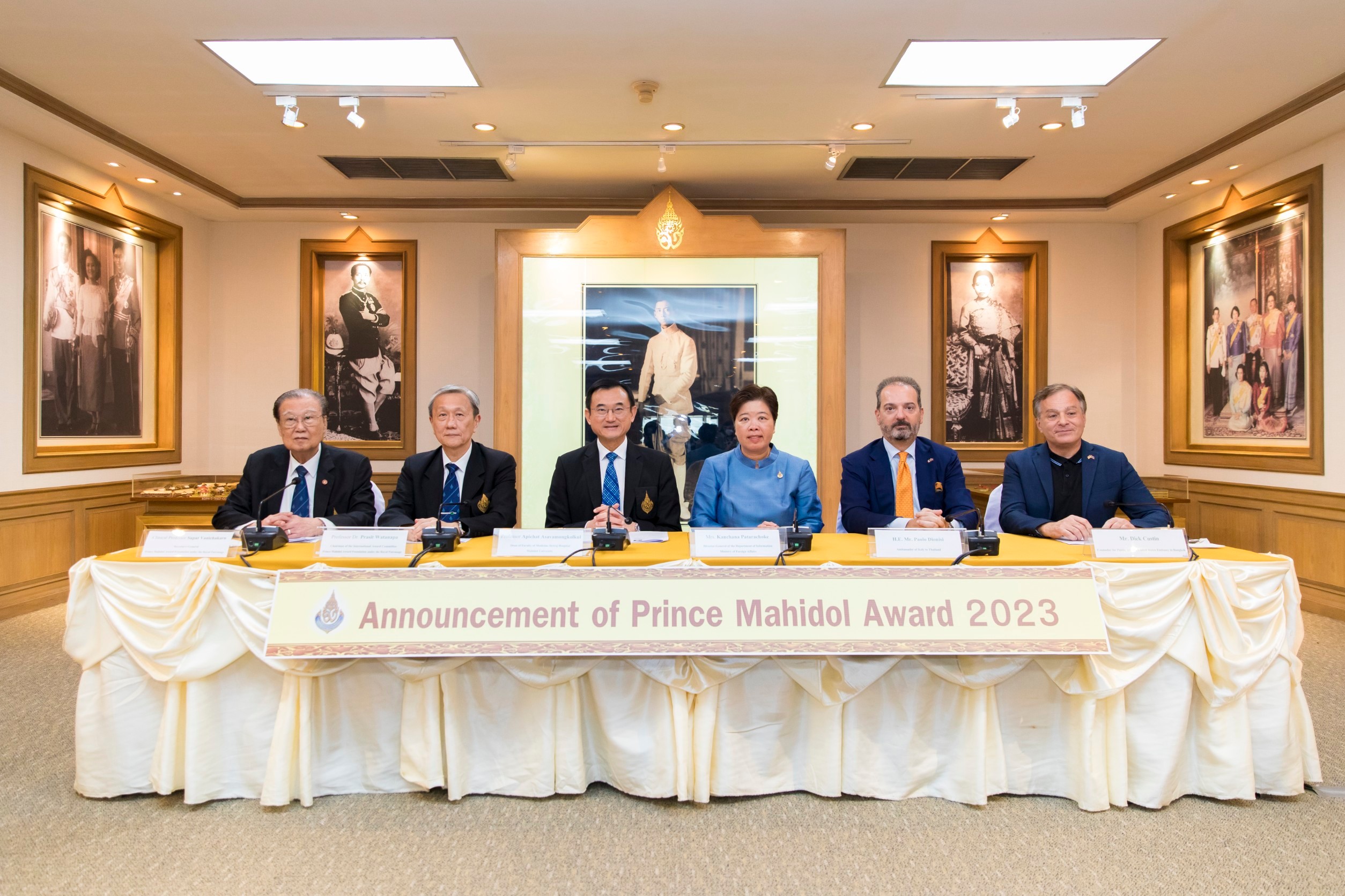 ศาสตราจารย์นายแพทย์อภิชาติ อัศวมงคลกุล คณบดีคณะแพทยศาสตร์ ศิริราชพยาบาล มหาวิทยาลัยมหิดล ในฐานะรองประธานมูลนิธิรางวัลสมเด็จเจ้าฟ้ามหิดล ในพระบรมราชูปถัมภ์ นางกาญจนา ภัทรโชค อธิบดีกรมสารนิเทศ กระทรวงการต่างประเทศในฐานะประธานคณะอนุกรรมการฝ่ายประชาสัมพันธ์ฯ มูลนิธิรางวัลสมเด็จเจ้าฟ้ามหิดล ในพระบรมราชูปถัมภ์ และศาสตราจารย์ ดร.นายแพทย์ประสิทธิ์ วัฒนาภา ประธานคณะกรรมการรางวัลนานาชาติ มูลนิธิรางวัลสมเด็จเจ้าฟ้ามหิดล ในพระบรมราชูปถัมภ์ ได้ร่วมกันแถลงผลการตัดสินผู้ได้รับพระราชทานรางวัลสมเด็จเจ้าฟ้ามหิดล ครั้งที่ 32 ประจำปี 2566 ณ ห้องสมเด็จพระบรมราชชนก ตึกสยามินทร์ ชั้น 2 โรงพยาบาลศิริราช