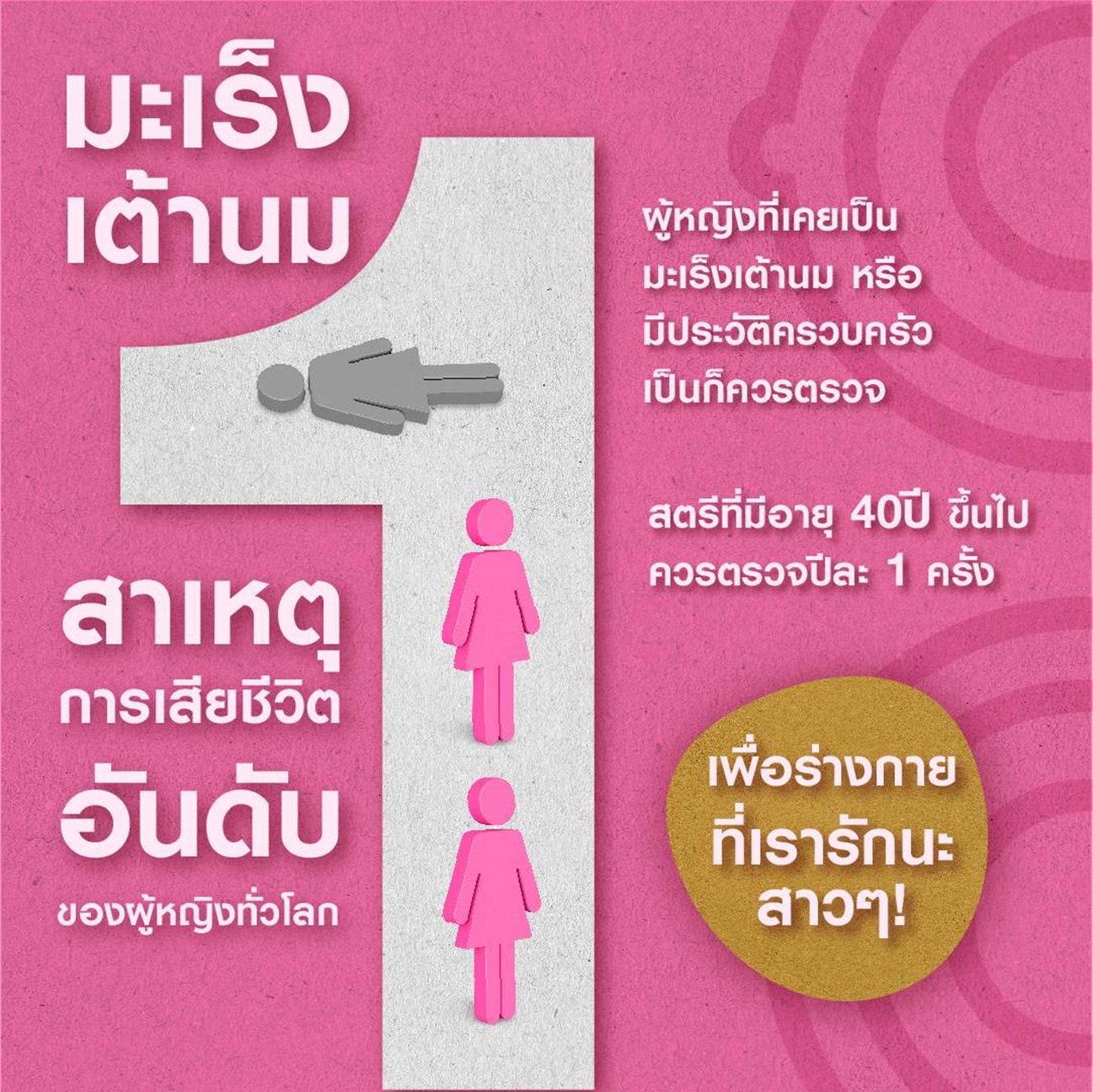 โรคมะเร็งเต้านม เป็นมะเร็งที่พบได้บ่อยเป็นอันดับ 1 ของผู้หญิงทั่วโลก จากสถิติขององค์การอนามัยโลก มีผู้หญิงเป็นมะเร็งเต้านมกว่า 2 ล้านคนต่อปี และเสียชีวิตกว่า 685,000 รายทั่วโลก ขณะที่ ข้อมูลจากกรมการแพทย์ สถานบันมะเร็งแห่งชาติ พบว่า มีผู้หญิงไทยป่วยเป็นมะเร็งเต้านม 18,000 คนต่อปี หรือคิดเป็น 49 คนต่อวัน และเสียชีวิต 4,800 คนต่อปี หรือ 13 รายต่อวัน โดยจำนวนของผู้ป่วยมีแนวโน้มเพิ่มสูงขึ้นต่อเนื่องทุกปี