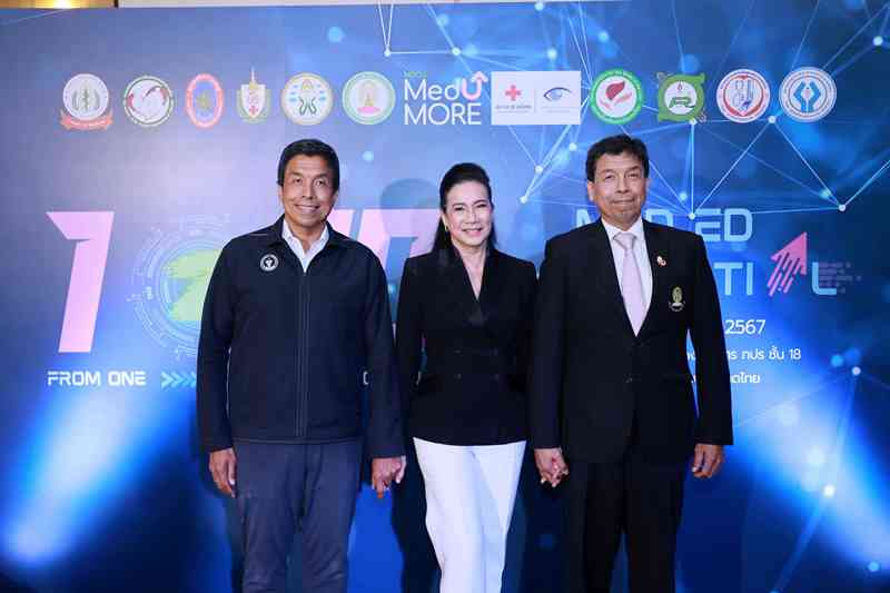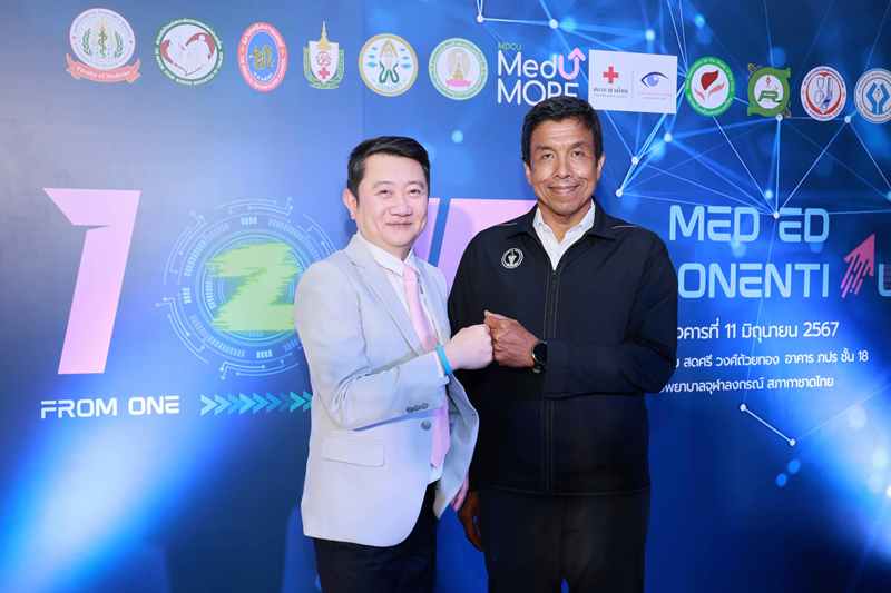คณะแพทย์ฯ จุฬา จัดงานแถลงข่าวและพิธีลงนามทำบันทึกข้อตกลงความร่วมมือด้านการแลกเปลี่ยนเรียนรู้ผ่านทางแพลตฟอร์ม MedUMORE ระหว่าง คณะแพทยศาสตร์ จุฬาลงกรณ์มหาวิทยาลัย กับ 10 องค์กรการแพทย์ชั้นนำของประเทศไทย ณ ห้องประชุม สดศรี วงศ์ถ้วยทอง อาคาร ภปร ชั้น 18 โรงพยาบาลจุฬาลงกรณ์ สภากาชาดไทย นำโดย คณะแพทยศาสตร์ จุฬาลงกรณ์มหาวิทยาลัย ร่วมกับ แพทยสภา สถาบันการพยาบาลศรีสวรินทิรา สภากาชาดไทย สมาคมโรคตับแห่งประเทศไทย สมาคมรูมาติสซั่มแห่งประเทศไทย สมาคมความดันโลหิตสูงแห่งประเทศไทย ศูนย์ดวงตาสภากาชาดไทย สมาคมปลูกถ่ายอวัยวะแห่งประเทศไทย สภาเทคนิคการแพทย์ และ Faculty of Medicine, University of Health Sciences, Lao People’s Democratic Republic. รวมทั้ง สมาคมนักสังคมสงเคราะห์ทางการเเพทย์ไทย