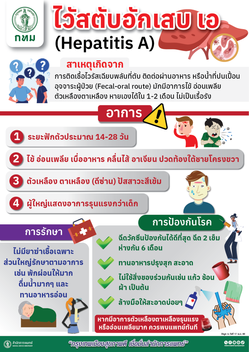 กทม. เฝ้าระวังโรคไวรัสตับอักเสบเอ แนะ “กินสุก ร้อน สะอาด” – เตรียมความพร้อมคุมเข้มป้องกันการระบาด