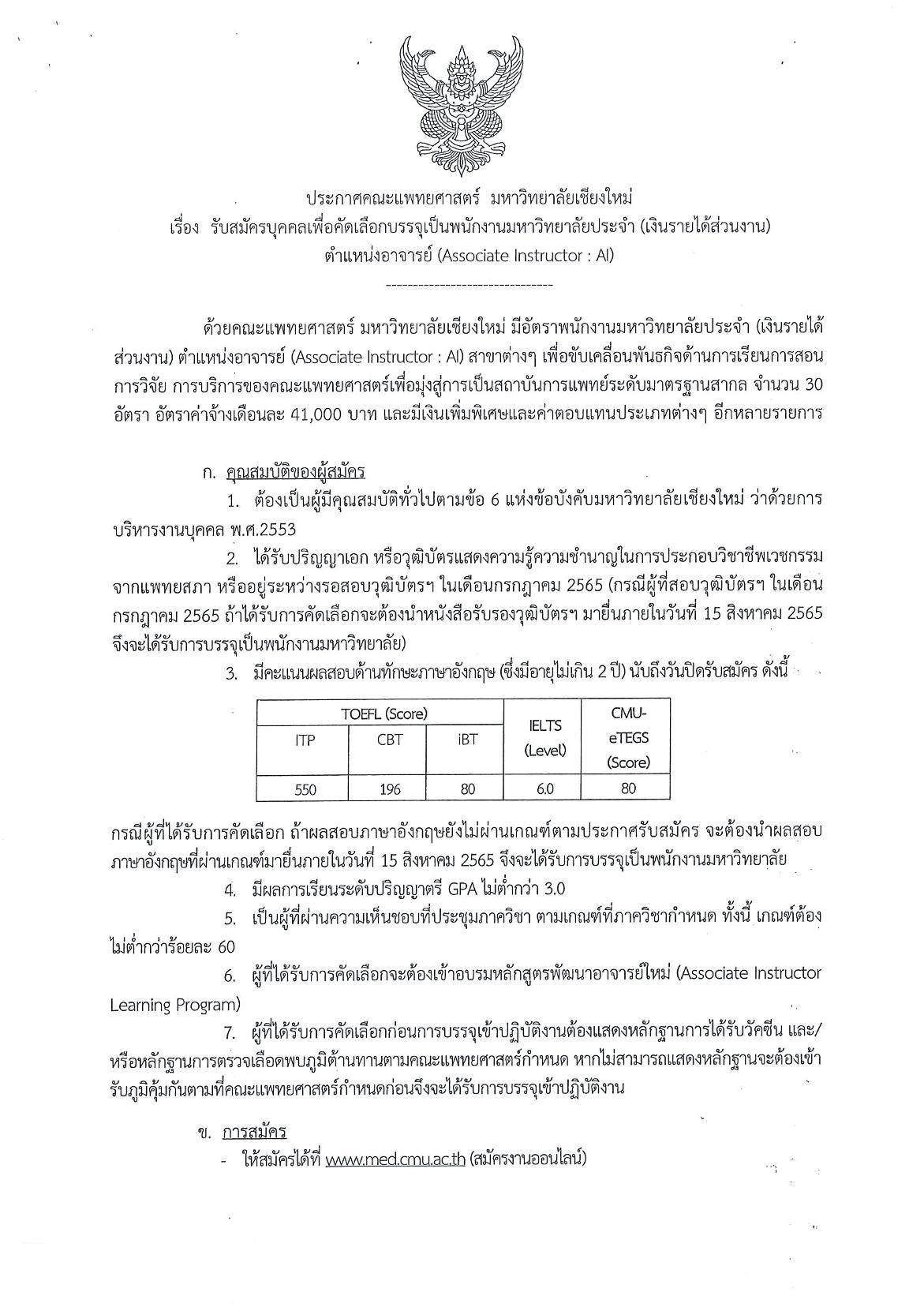คณะแพทยศาสตร์ มหาวิทยาลัยเชียงใหม่ รับสมัคร อาจารย์ หลากหลายสาขา 30 อัตรา