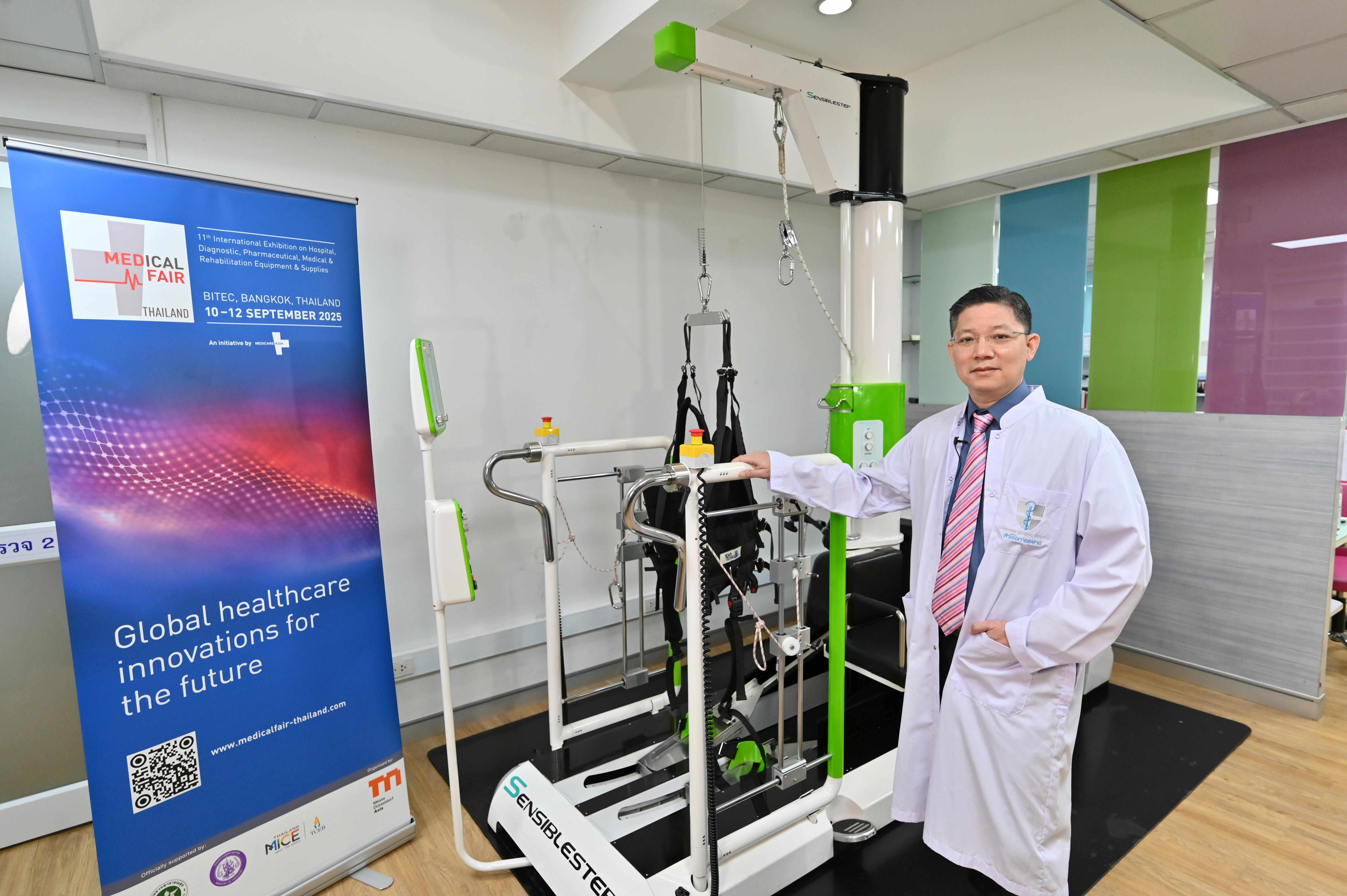 ผศ.นพ. ภาริส วงศ์แพทย์ ผู้เชี่ยวชาญด้านเวชศาสตร์ฟื้นฟู กรรมการ มูลนิธิสำโรงรวมใจและโรงพยาบาลสำโรงการแพทย์ กล่าวว่า โรคหลอดเลือดสมอง (สโตรก) เป็นสาเหตุหลักของความพิการ โดยไม่จำกัดเฉพาะผู้สูงอายุ แต่ปัจจุบันพบในวัยทำงาน (อายุต่ำกว่า 50 ปี) มากขึ้น หนึ่งในสามของผู้ป่วยสโตรกเผชิญความพิการรุนแรง โดยเฉพาะปัญหาการเดิน สำหรับ “Sensible STEP” เป็นนวัตกรรมที่ช่วยให้แพทย์และนักกายภาพบำบัดใช้หลักการ “Locomotor Therapy” ได้อย่างมีประสิทธิภาพสูงสุดสำหรับผู้ป่วยสโตรก เพิ่มโอกาสให้ผู้ป่วยสามารถกลับมาเดินได้อย่างอิสระถึง 3 เท่าเมื่อเทียบกับการฝึกแบบเดิมได้หลังฝึกเพียง 1 เดือน นอกจากนี้ ระบบ “Bodyweight-Supported Treadmill Training” (BWSTT) ที่ใช้ระบบโปรโตคอลหลากทิศทางและความเร็วแปรผัน จะช่วยให้ผู้สูงอายุที่ฝึกตามหลักการ Locomotor Therapy สามารถลดความเสี่ยงการหกล้มได้ถึง 95% ภายใน 6 สัปดาห์ โดยนวัตกรรมทั้งสองนี้จะจัดแสดงพร้อมเผยหลักการทำงานภายในงาน MEDICAL FAIR THAILAND 2025