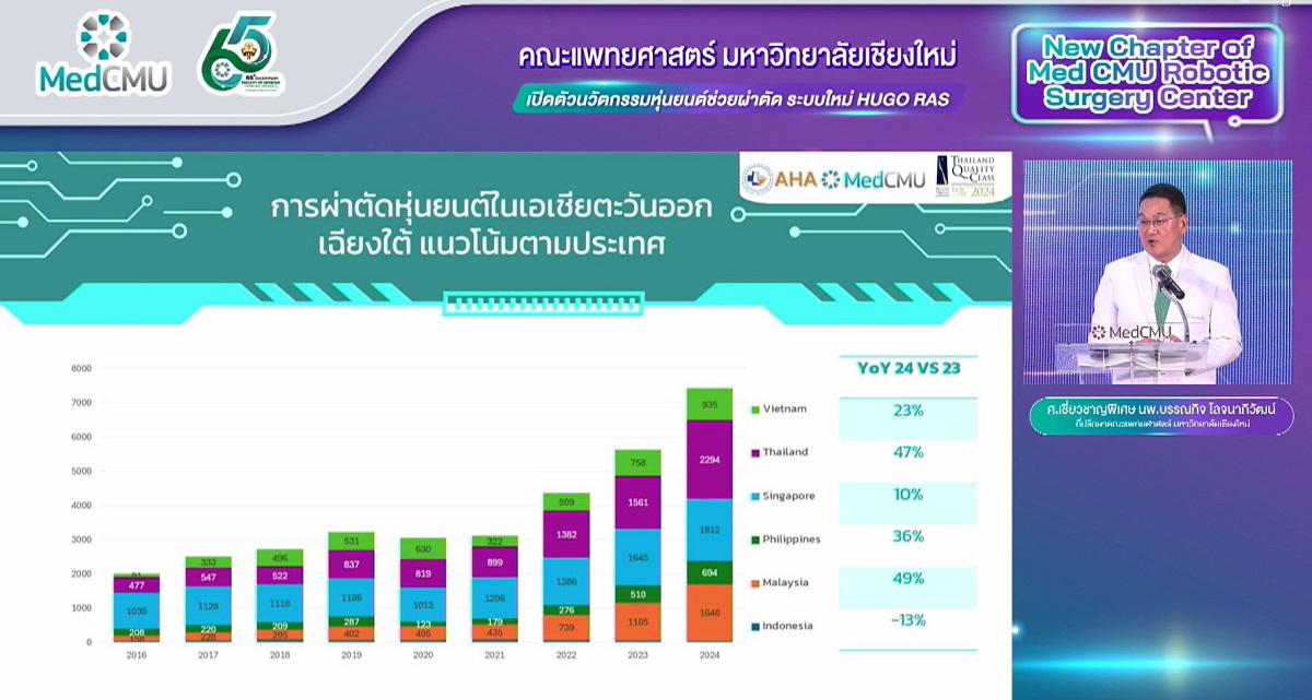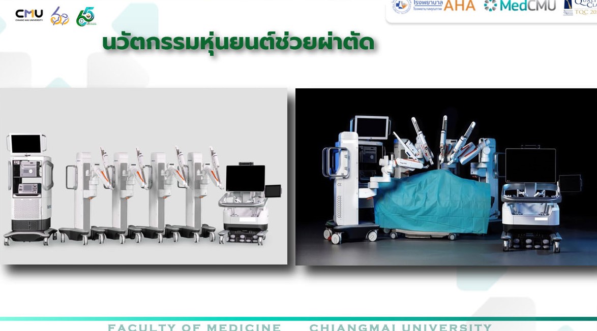 เชียงใหม่ – คณะแพทยศาสตร์ มช. เปิดตัว นวัตกรรมหุ่นยนต์ช่วยผ่าตัด ระบบใหม่ New Chapter of Med CMU Robotic Surgery Center แห่งแรกของประเทศไทยและภูมิภาคเอเชียตะวันออกเฉียงใต้ ยกระดับระบบบริการสุขภาพด้วยเทคโนโลยีขั้นสูง การตอบสนองต่อความต้องการด้านสุขภาพของประชาชน ให้บริการทางการแพทย์อย่างมีประสิทธิภาพและหลากหลายทันสมัยอย่างสูงสุด