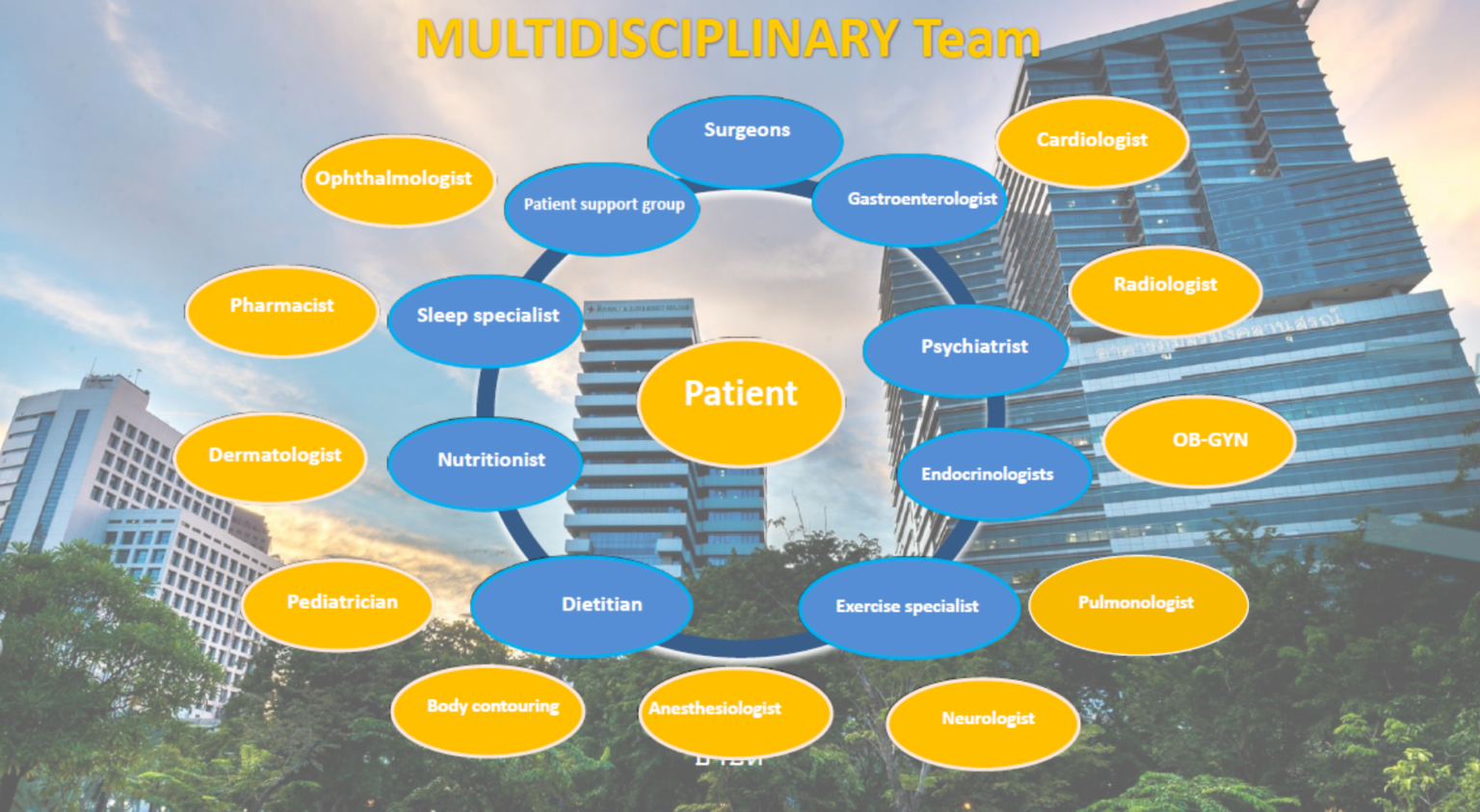นอกจากนี้ยังมีบุคลากรอื่น ๆ เช่น นักกายภาพบำบัดดูแลฟื้นฟูผู้ป่วย คณะวิทยาศาสตร์การกีฬาดูแลเรื่องการออกกำลังกาย นักกำหนดอาหารดูแลเรื่องอาหาร รวมทั้งผู้ป่วย ครอบครัว และ Patient Support Group กลุ่มของผู้ป่วยที่มีภาวะโรคอ้วนมาสร้างกำลังใจ พูดคุยแลกเปลี่ยนประสบการณ์ซึ่งกันและกัน