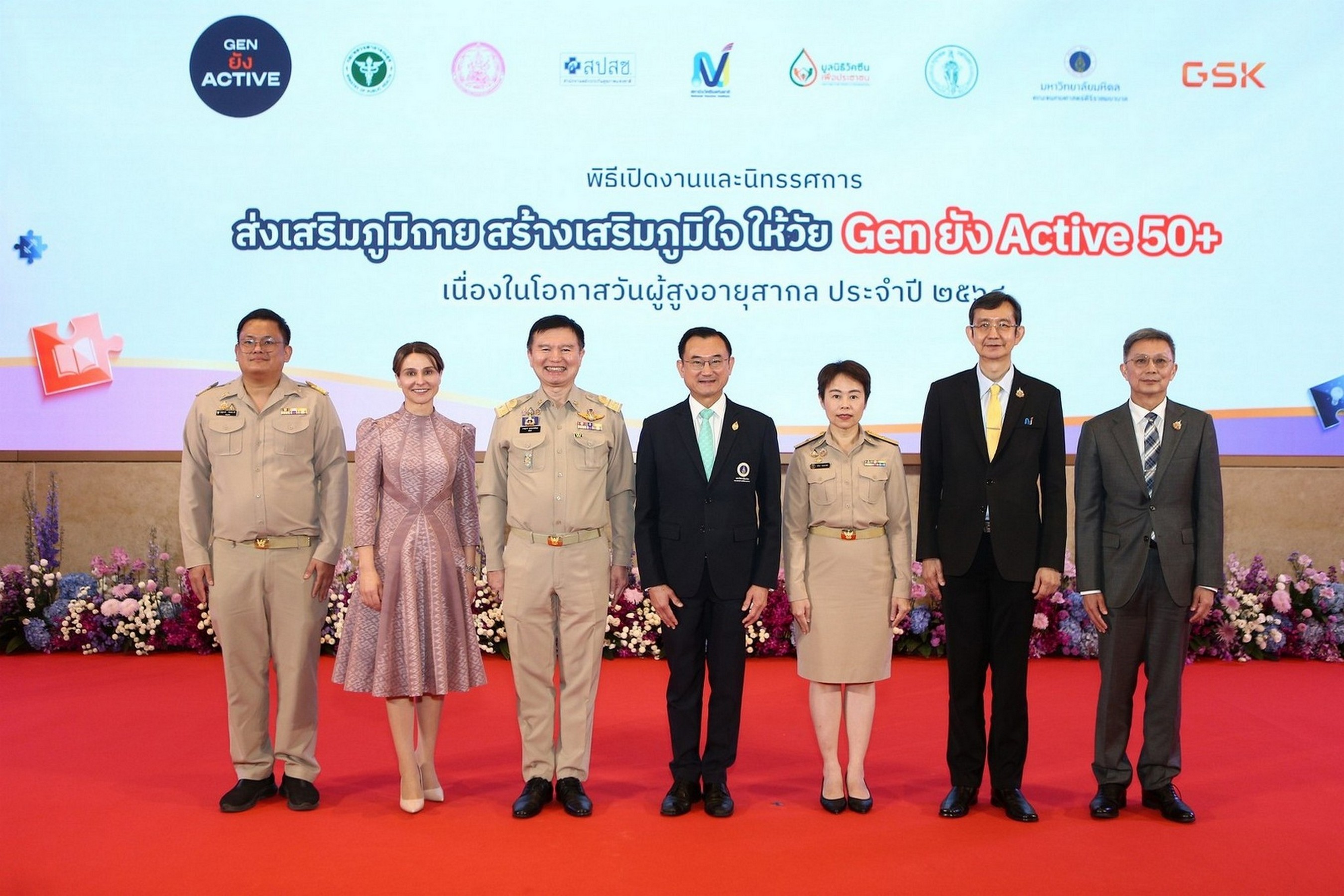 โครงการ Gen ยัง Active 50+ จัดเสวนา “บูรณาการเชิงรุกเพื่อส่งเสริมสุขภาพเชิงป้องกันในระยะยาวของประเทศไทย” ในงาน “ส่งเสริมภูมิกาย สร้างเสริมภูมิใจ ให้วัย Gen ยัง Active 50+” เนื่องในวันผู้สูงอายุสากล (International Day of Older Persons) ระดมผู้กำหนดนโยบายสุขภาพระดับประเทศ กรมควบคุมโรค กรมอนามัย สถาบันวัคซีนแห่งชาติ สำนักงานหลักประกันสุขภาพแห่งชาติ กรุงเทพมหานคร และคณะแพทยศาสตร์ศิริราชพยาบาล ร่วมแสดงวิสัยทัศน์และแนวทางการขับเคลื่อนระบบสุขภาพไทย ตอบโจทย์ความท้าทายของสังคมสูงวัย เพื่อพัฒนาคุณภาพชีวิตของผู้สูงอายุในประเทศไทยให้ดีขึ้นอย่างยั่งยืน