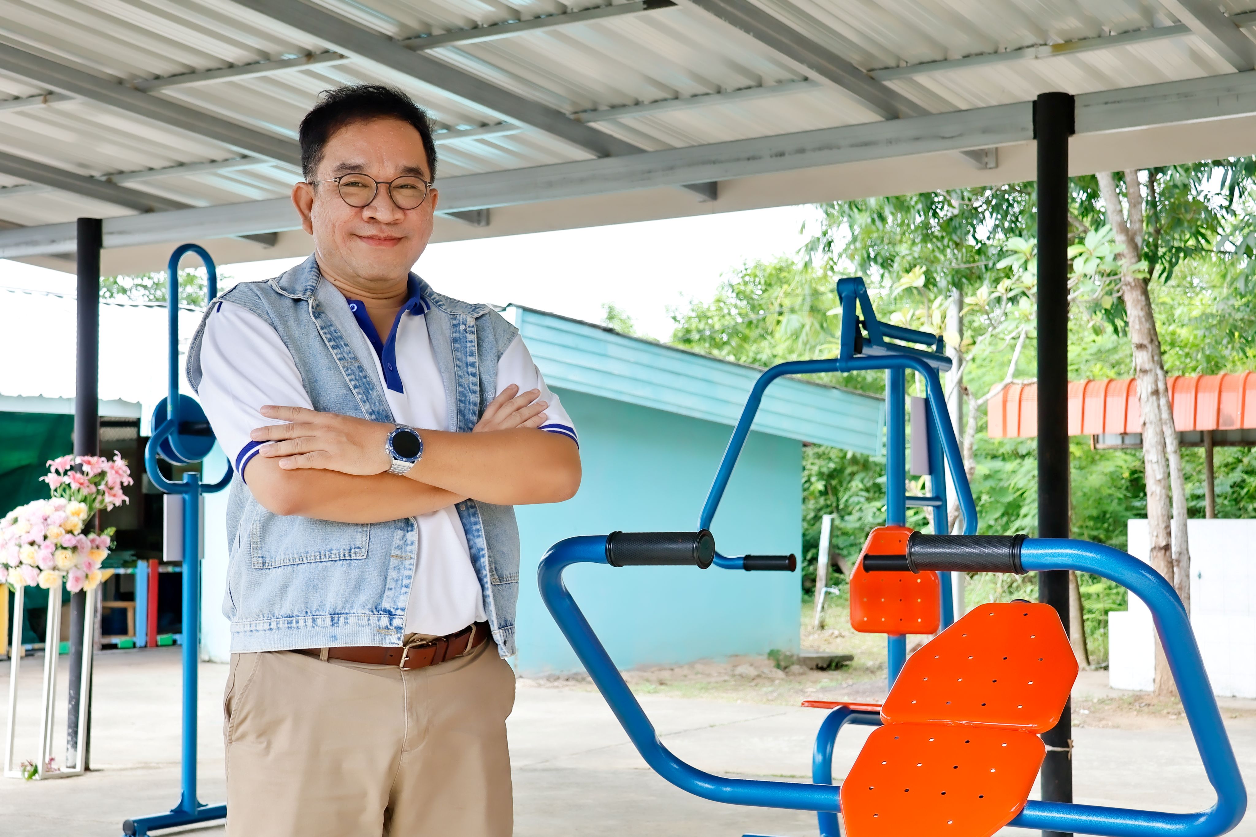 ดร.นพ.นิรุตติ์ กล่าวเสริมด้วยความภาคภูมิใจว่า “นอกเหนือจากกิจกรรมเบื้องต้นที่ได้จัดขึ้น เรายังได้ส่งมอบอุปกรณ์ออกกำลังกายครบชุด ซึ่งประกอบด้วยเครื่องปั่นจักรยาน ชุดดัมเบล วงล้อหมุนไหล่ เครื่องหมุนเอว พร้อมด้วยชุดปฐมพยาบาลเบื้องต้น และหุ่นฝึกช่วยฟื้นคืนชีพ เพื่อใช้ในการเรียนการสอนอบรมการฟื้นคืนชีพขั้นพื้นฐาน เพราะมุ่งหวังว่า สุขภาพที่ดีไม่ได้เกิดจากการรักษาเพียงอย่างเดียว แต่เกิดจากการป้องกันและการส่งเสริมให้ทุกคนมีโอกาสในการดูแลตนเองอย่างต่อเนื่อง การออกกำลังกายและการมีอุปกรณ์ที่เหมาะสมจึงเป็นหัวใจสำคัญของการสร้างสุขภาวะที่ยั่งยืน”