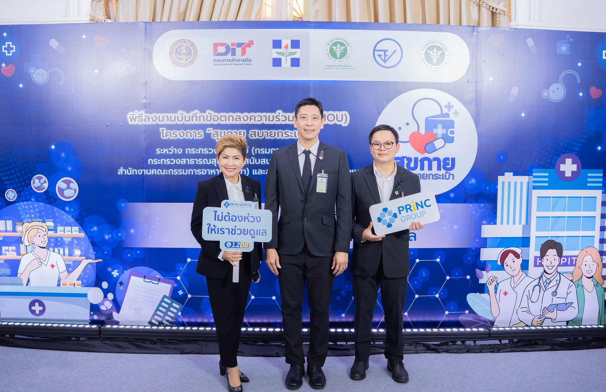 โดยมีคณะผู้บริหาร PRINC Group นำโดย นายแพทย์วิชญเวทย์ รักษ์กุลชน ประธานเจ้าหน้าที่บริหารร่วม บริษัท พริ้นซิเพิล แคปิตอล จำกัด (มหาชน) พร้อมด้วย นายจตุพล ชวพัฒนากุล ผู้อำนวยฝ่ายการตลาดเครือโรงพยาบาลพริ้นซ์ และ ดร.เรืองรอง องค์พัฒนกิจ ผู้ช่วยผู้อำนวยการโรงพยาบาล พริ้นซ์ สุวรรณภูมิ ร่วมงานพิธีลงนาม MOU โครงการ ‘สุขกาย สบายกระเป๋า’ โดยงานดังกล่าวมี นายอนุทิน ชาญวีรกูล นายกรัฐมนตรีและรัฐมนตรีว่าการกระทรวงมหาดไทย เป็นประธานพิธี และ นางศุภจี สุธรรมพันธุ์ รัฐมนตรีว่าการกระทรวงพาณิชย์ พร้อมด้วย นายพัฒนา พร้อมพัฒน์ รัฐมนตรีว่าการกระทรวงสาธารณสุข และคณะร่วมเปิดงาน ณ ตึกสันติไมตรี ทำเนียบรัฐบาลเมื่อ 4 พฤศจิกายนที่ผ่านมา