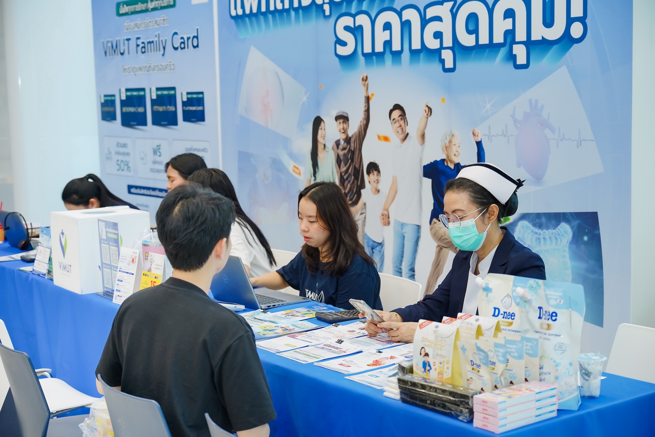 ความคุ้มค่ายังคงต่อเนื่องสำหรับผู้สมัครบัตร ViMUT Family Card ภายในงาน รับทันที Central Voucher สูงสุด 1,500 บาท ให้การดูแลสุขภาพของทุกครอบครัวเริ่มต้นอย่างคุ้มค่าและมีความหมาย นอกจากนี้ผู้ที่ซื้อแพ็กเกจตรวจสุขภาพยังจะได้รับของสมนาคุณตามยอดซื้อ ทั้งแก้วน้ำ ร่ม หมอนผ้าห่ม กระเป๋ายาประจำบ้าน หรือเครื่องใช้ไฟฟ้าที่ช่วยเติมความสะดวกในชีวิตประจำวัน สะท้อนความตั้งใจของวิมุตที่อยากให้ทุกคนเห็นว่า การดูแลสุขภาพคือของขวัญที่ดีที่สุดสำหรับตัวเอง ง่าย คุ้มค่า และเริ่มต้นได้ทันทีที่งานนี้