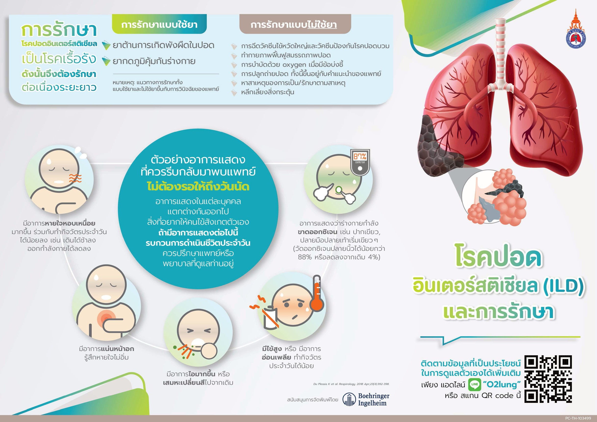 ด้าน พญ. ลัคนา กาญจนกุล Head of Medical, บริษัท เบอริงเกอร์ฯ กล่าวว่า เมื่อไหร่ก็ตามที่ร่างกายเกิดการอักเสบ จะเกิดการซ่อมแซม ทำให้เกิดเป็นผังผืดขึ้นมาทำให้เกิดโรคไอแอลดี ผู้ป่วยกลุ่มนี้มีอาการตั้งแต่น้อยจนถึงมาก ดังนั้น หากสามารถตรวจวินิจฉัยได้เร็วจะช่วยผู้ป่วยได้มาก