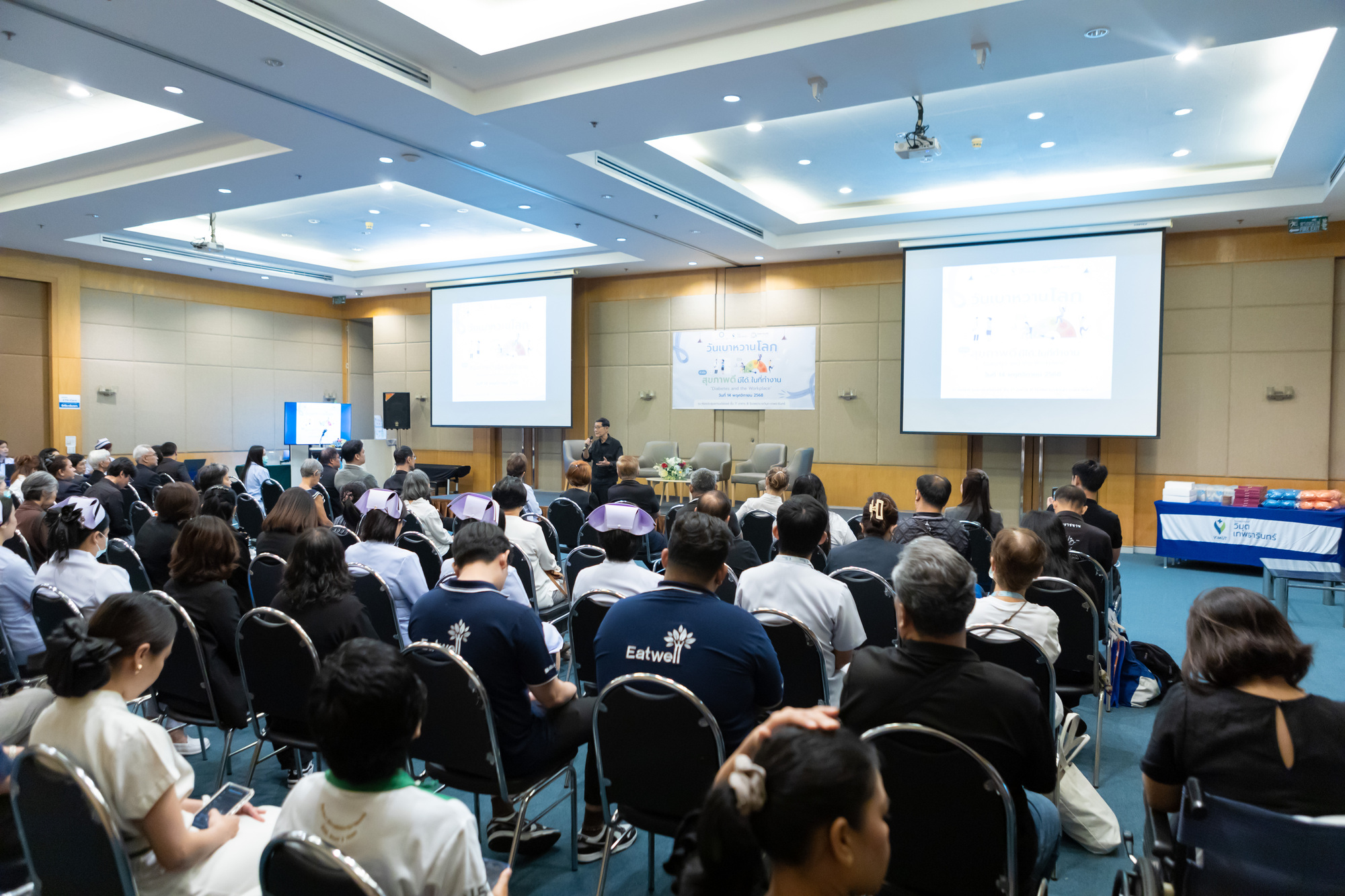 หนึ่งในกิจกรรมที่น่าสนใจ คือ ช่วงเสวนา "สุขภาพดี มีได้...ในที่ทำงาน" นำโดย แพทย์ผู้เชี่ยวชาญ นพ.เอกลักษณ์ วโนทยาโรจน์ อายุรแพทย์ต่อมไร้ท่อ และผู้อำนวยการศูนย์เบาหวาน ไทรอยด์ และต่อมไร้ท่อเทพธารินทร์ ที่มาอัปเดตสถานการณ์โรคเบาหวานปัจจุบันที่น่าเป็นห่วงอย่างยิ่ง เพราะเป็นโรคในกลุ่ม NCDs ที่เพิ่มขึ้นเร็ว ในทุก ๆ 5 ปี จะมีผู้ป่วยเพิ่ม 1 ล้านคน หรือ ในทุก 9 คน จะเป็นเบาหวาน 1 คน นอกจากนี้ โรคเบาหวานยังเริ่มคุกคามคนวัยทำงานมากขึ้น อายุเฉลี่ยผู้ที่ป่วยลดลงจาก 50 ปี เป็น 40 ปี และเริ่มพบในวัย 30 ปีมากขึ้น โดยกลุ่มวัยทำงานมักมีภาวะแทรกซ้อนสูงกว่ากลุ่มอื่น ดังนั้น “คนวัยทำงานจำเป็นต้องใส่ใจสุขภาพอย่างจริงจังและต่อเนื่อง”