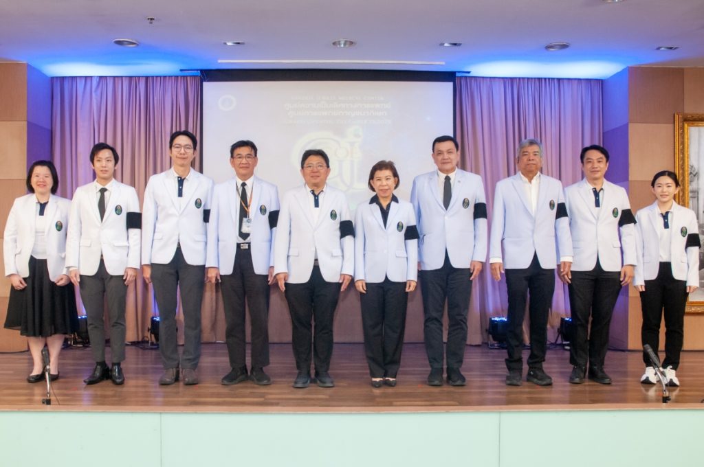 รศ. นพ. ธีระ กล่าวเพิ่มเติมว่า “เพื่อส่งมอบบริการทางการแพทย์ที่เป็นเลิศ ศูนย์การแพทย์ฯ จึงยกระดับการเรียนการสอน และสร้างความพร้อมเพื่อการวิจัย พัฒนาการบริหารจัดการทรัพยากรมนุษย์ เพื่อสนับสนุนการเจริญเติบโตของศูนย์การแพทย์ฯ รวมทั้งมีนโยบายให้จัดตั้งศูนย์ความเป็นเลิศแบบบูรณาการ ในชื่อ “ศูนย์ความเป็นเลิศทางการแพทย์ ศูนย์การแพทย์กาญจนาภิเษก (GJCOE – GOLDEN JUBILEE CENTER OF EXCELLENCE)” วัตถุประสงค์เพื่อพัฒนาระบบการดูแลรักษาโรคที่ซับซ้อนให้ได้มาตรฐานสูงสุดเทียบเท่าศูนย์วิจัยและบริการทางการแพทย์ชั้นนำ มุ่งสู่การเป็นศูนย์กลางและต้นแบบของผู้ให้บริการการรักษาที่เป็นมาตรฐานระดับนานาชาติ แสดงถึงความพร้อมด้านองค์ความรู้ของแพทย์รุ่นใหม่ ซึ่งผมเชื่อว่าจะช่วยขยายโอกาสการรักษาไปสู่ประชาชนในพื้นที่ใกล้เคียง ตลอดจนพื้นที่เขต 5 ได้รับการรักษาที่มีประสิทธิภาพยิ่งขึ้น” ผอ.ศูนย์การแพทย์ฯ กล่าว