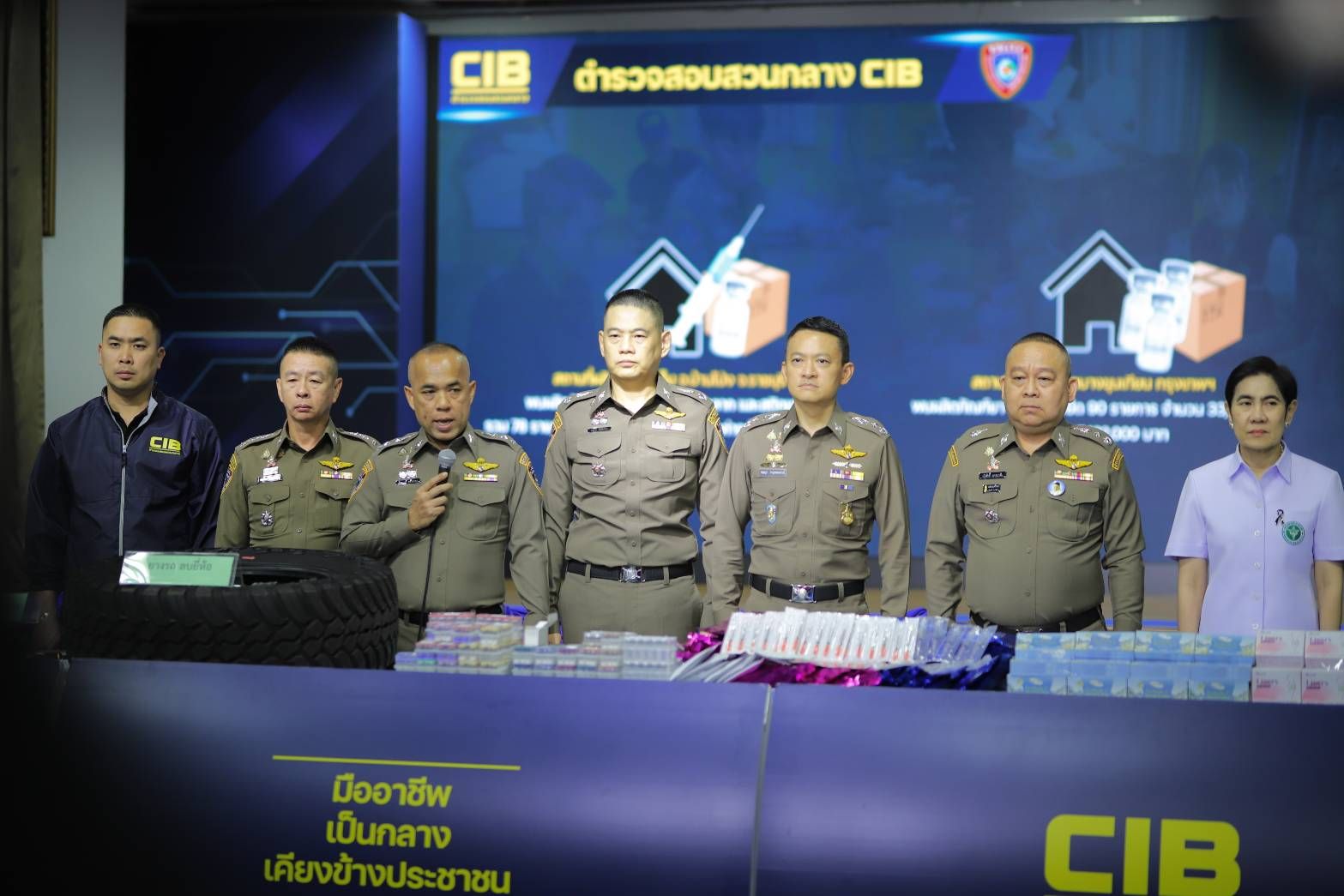 กองบัญชาการตำรวจสอบสวนกลาง (CIB) โดย พล.ต.ท.ณัฐศักดิ์ เชาวนาศัย ผบช.ก., พล.ต.ต.โสภณ สารพัฒน์, พล.ต.ต.ศารุติ แขวงโสภา รอง ผบช.ก., เจ้าหน้าที่ตำรวจ บก.ปคบ. โดยการสั่งการของ พล.ต.ต.คงกฤช เลิศสิทธิกุล ผบก.ปคบ., พ.ต.อ.อนุวัฒน์ รักษ์เจริญ, พ.ต.อ.ชัฏฐ นากแก้ว, พ.ต.อ.สำเริง อำพรรณทอง, พ.ต.อ.พัฒนพงศ์ ศรีพิณเพราะ รอง ผบก.ปคบ., พ.ต.อ.วีระพงษ์ คล้ายทอง ผกก.4 บก.ปคบ., สำนักงานคณะกรรมการอาหารและยา โดย ภญ.สุภัทรา บุญเสริม เลขาธิการคณะกรรมการอาหารและยา, ภก.เลิศชาย เลิศวุฒิ รองเลขาธิการคณะกรรมการอาหารและยาและ นพ.รุ่งฤทัย มวลประสิทธิ์พร รองเลขาธิการคณะกรรมการอาหารและยา สำนักงานสาธารณสุขจังหวัดนครปฐม โดยนพ.วิโรจน์ รัตนอมรสกุล นายแพทย์สาธารณสุขจังหวัดนครปฐม และสำนักงานสาธารณสุขจังหวัดราชบุรี โดย พญ.ปาจรีย์ อารีย์รบนายแพทย์สาธารณสุขจังหวัดราชบุรี เปิดปฏิบัติการทลายแหล่งผลิตและขายผลิตภัณฑ์ยาฉีดกลุ่มเปปไทด์เถื่อนอ้างลดน้ำหนัก ผิวสวยใส ชะลอวัย ในพื้นที่ จ.กรุงเทพมหานคร จ.นครปฐม และ จ.ราชบุรี ตรวจยึดของกลาง 389 รายการ รวม 119,383 ชิ้น มูลค่า 17,938,000 บาท