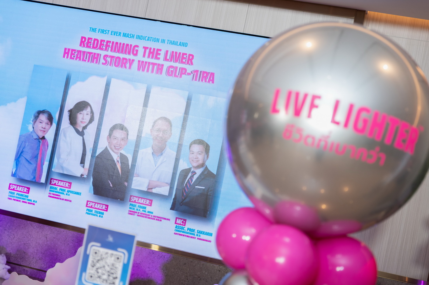 ผู้บรรยายภายในงานประกอบด้วยศ.นพ.พูลชัย จรัสเจริญวิทยา นายกสมาคมโรคตับแห่งประเทศไทย,พล.ท.หญิง รศ.พญ. อภัสนี บุญญาวรกุล นายกสมาคมต่อมไร้ท่อแห่งประเทศไทย,ศ.นพ.ธีระ พิรัชวิสุทธิ์ นายกสมาคมแพทย์ระบบทางเดินอาหารแห่งประเทศไทยและ ศ.นพ. แฟรงค์ ทักค์ หัวหน้าสาขาวิชาเชี่ยวชาญด้านตับและทางเดินอาหาร จาก Charité – Universitätsmedizin Berlinประเทศเยอรมนี