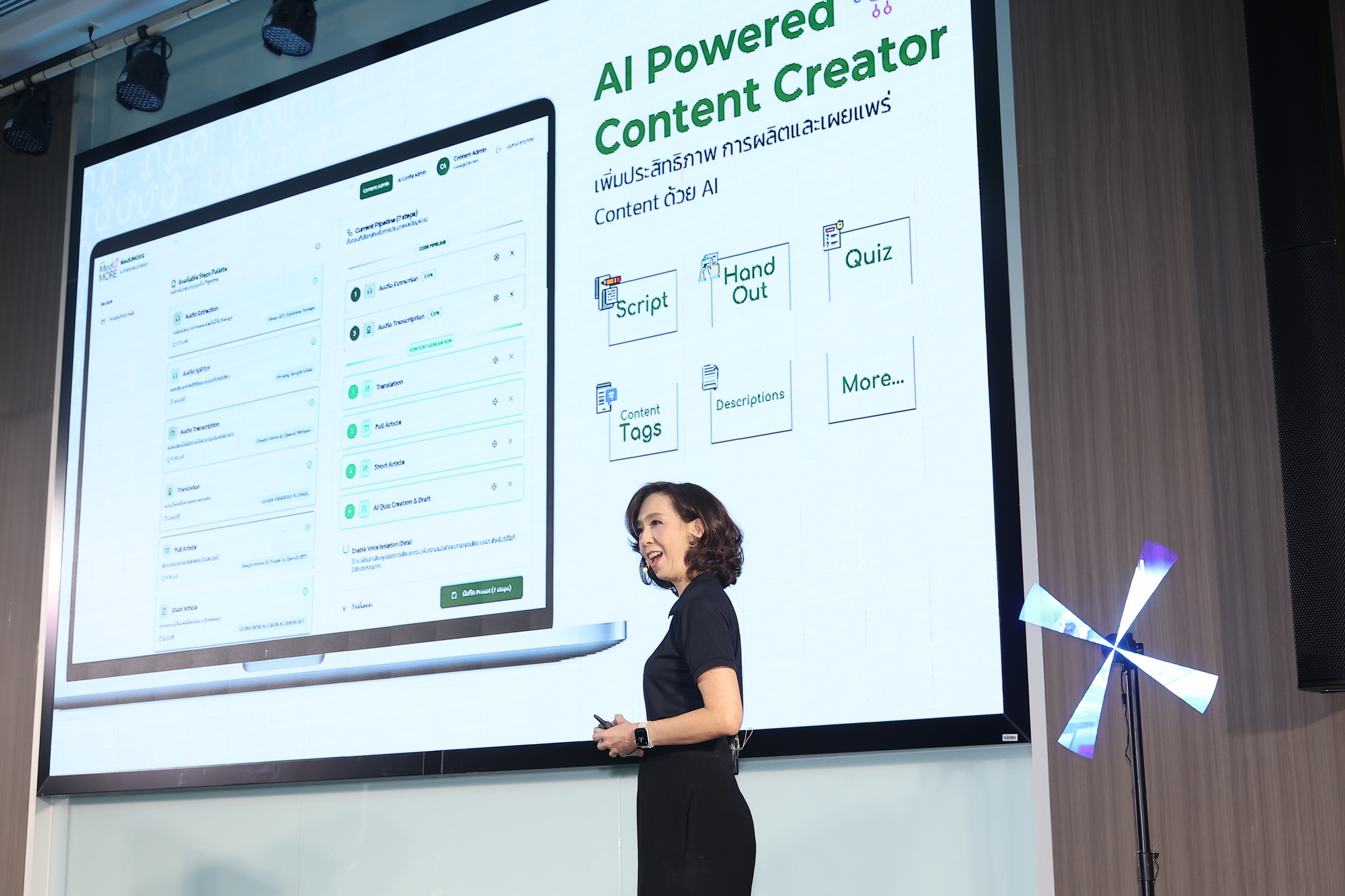 ภายในงานยังมีการเปิดตัวนวัตกรรม “The AI Trinity” โดย ผู้ช่วยศาสตราจารย์ (พิเศษ) นพ.สุรินทร์ อัศววิทูรทิพย์ ผู้ช่วยด้านการบริการวิชาการและการศึกษานานาชาติ คณะแพทยศาสตร์ จุฬาฯ ซึ่งประกอบด้วย 3 ฟีเจอร์หลักที่จะเปลี่ยนโฉมการเรียนรู้ ได้แก่ 1) AI Scenario Based Learning ห้องเรียน จำลองสถานการณ์ให้แพทย์ฝึกตัดสินใจในพื้นที่ปลอดภัย 2) Smart Studio (Multi Visual Interactive Learning) สัมผัส ประสบการณ์การเรียนรู้แบบใหม่ ดูวิดีโอพร้อม Learning Materials และมีผู้ช่วยอัจฉริยะ ที่ตอบคำถามผู้เรียนได้ทันที และ 3) AI Powered Content Creator ระบบอัตโนมัติที่ช่วยอาจารย์แพทย์ ผลิตสื่อการสอน ข้อสอบ และบทสรุปได้ภายในไม่กี่นาที