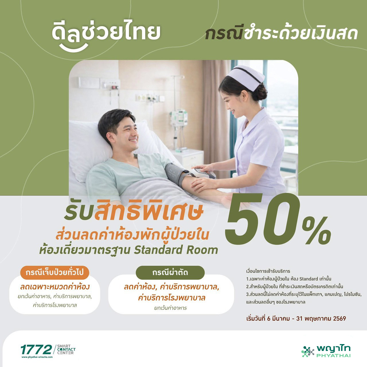 - สิทธิประโยชน์ค่าห้องพัก: ลดสูงสุด 50% พร้อมทีมดูแลส่วนต่างประกัน เพื่อให้คนไข้ “ไม่ต้องจ่ายเพิ่ม”