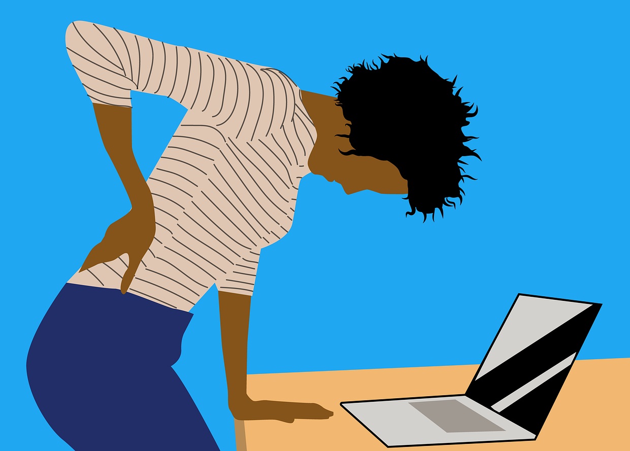 - ปวดหลังเรื้อรัง เกิดจากการนั่งอยู่หน้าจอคอมพิวเตอร์หลายชั่วโมง หรือนั่งทำงานผิดท่า นั่งหลังค่อม อาจทำให้กล้ามเนื้อต้นคอ เมื่อย เกร็งอยู่ตลอด รวมถึงงานที่ต้องยืนนาน ๆ โดยเฉพาะคุณผู้หญิงที่ใส่ส้นสูง